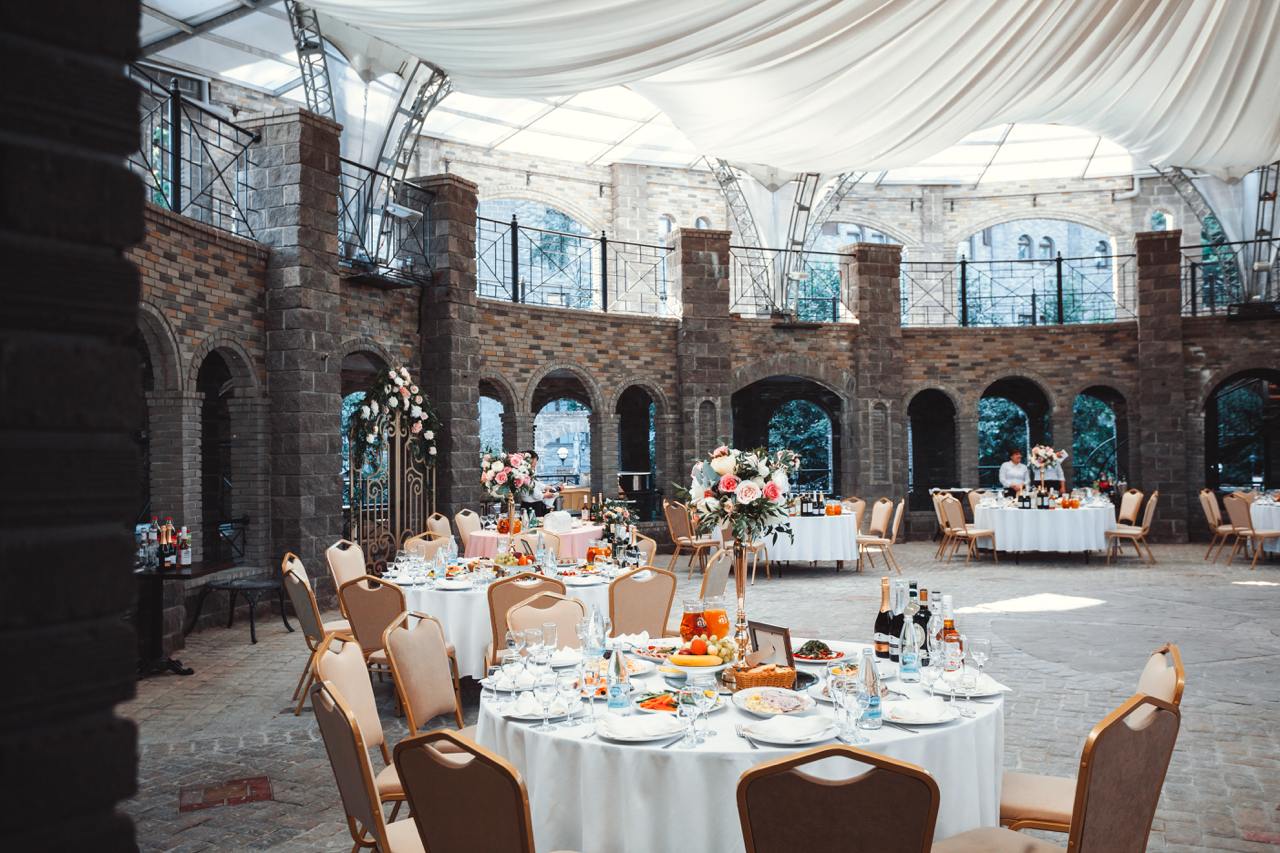 Этот уникальный зал, расположенный в здании XVIII века, впечатлит вас своим величием и атмосферой. Высокие потолки, старинные деревянные балки, кирпичные стены и невероятные хрустальные люстры создают уютную и, одновременно, роскошную атмосферу.
