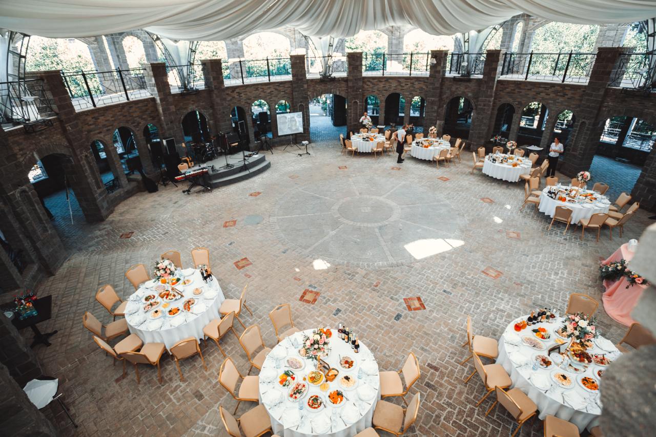 Шикарный европейский замок в стиле Людовика XI включает большую центральную площадку колизейного типа со стационарным куполом, окруженную декоративным рвом с водой, рекреационные зоны и беседки, оригинальный садовый ландшафт. Площадка предоставляет несколько банкетных залов, ресторан, шатер, профессиональное световое и звуковое оборудование, высокий уровень сервиса, изысканную кухню, номерной фонд для размещения гостей, фотозоны и прочие услуги на самый взыскательный вкус.