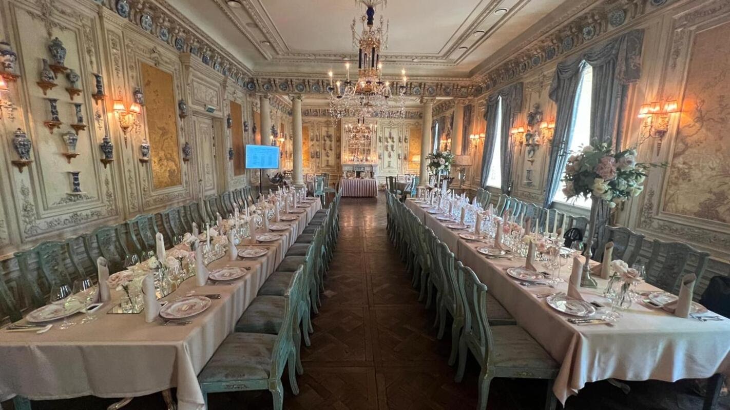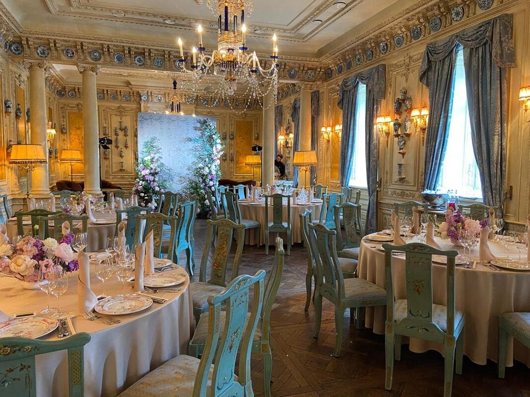 Залы особняка созданы для лучших мероприятий. Готический стиль и нетронутый интерьер, задуманный архитектором, погружает гостя в атмосферу Франции XV века. Большой светлый банкетный зал общей площадью 420 м2 и высотой потолков 5 метров.