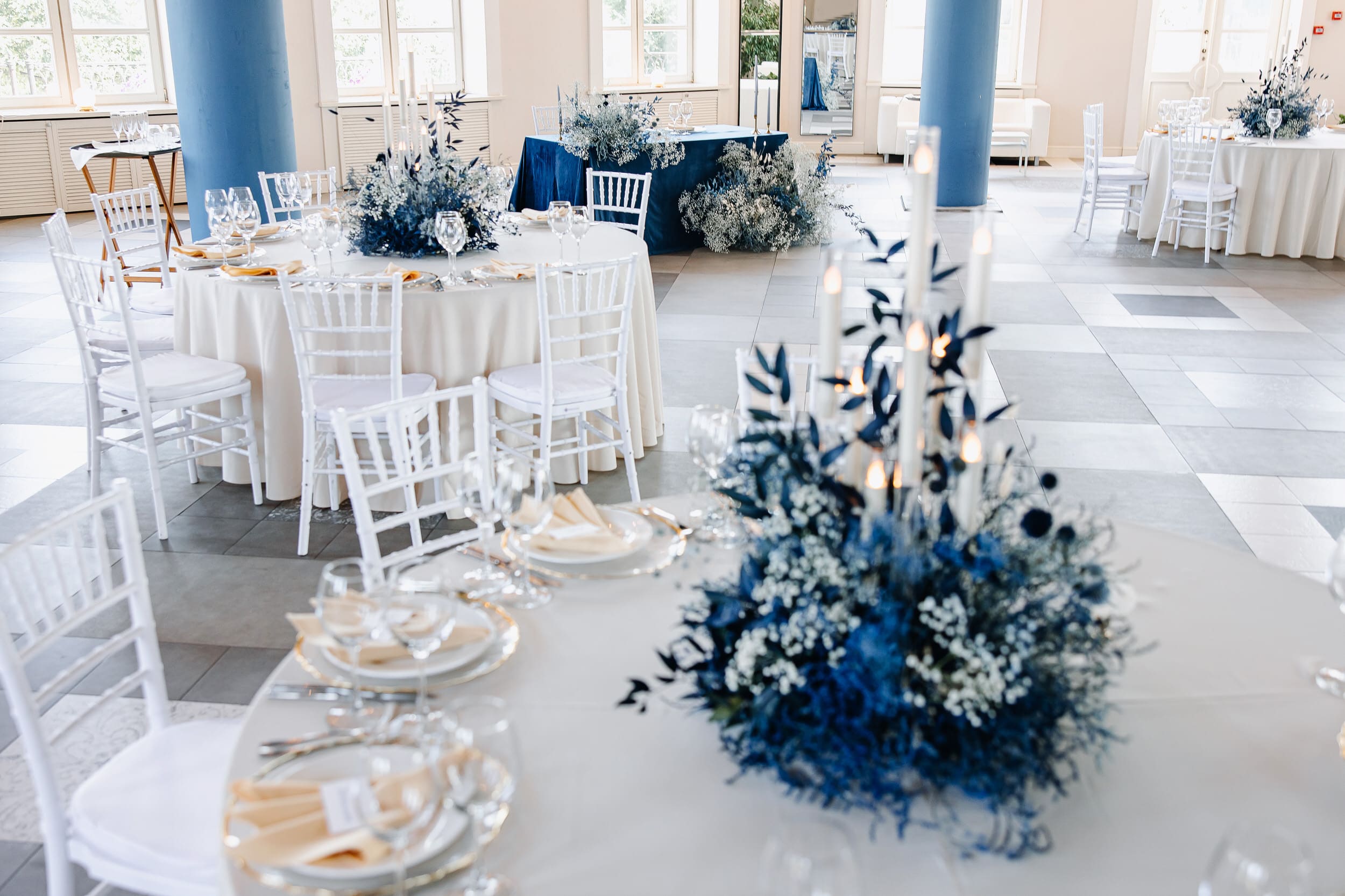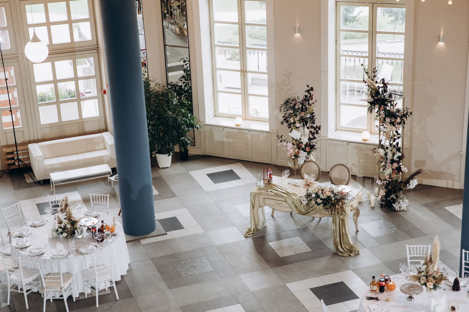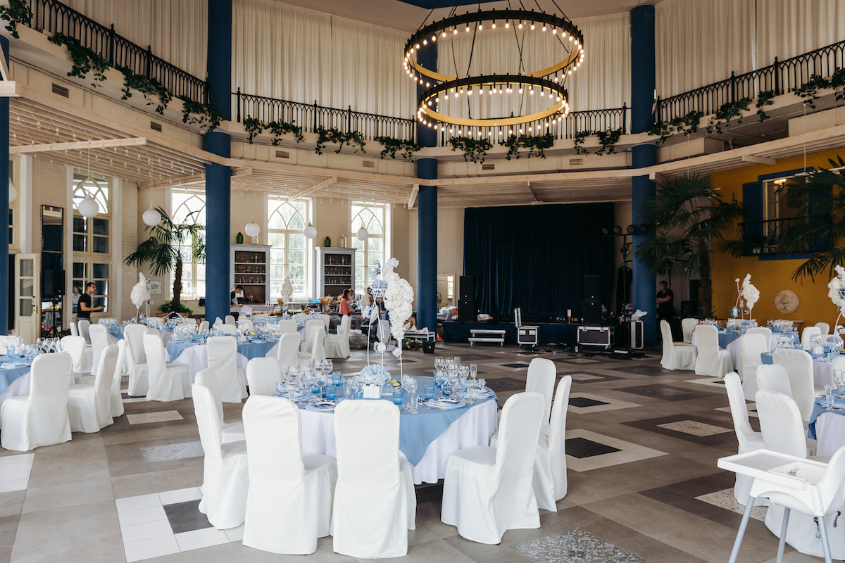 Просторный банкетный зал 210 кв.м. с панорамным видом на город создаст незабываемую атмосферу вашего особого дня.