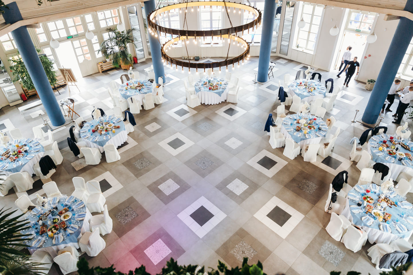В ресторане два элегантных зала, идеально подходящих для мероприятий любого формата. Панорамные окна наполняют зал дневным светом, а продуманная архитектура без жесткого зонирования стенами дает полную свободу в организации пространства: установка сцены, фотозоны, свободная рассадка гостей — всё возможно.