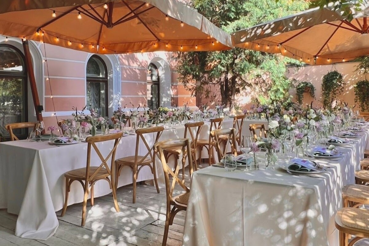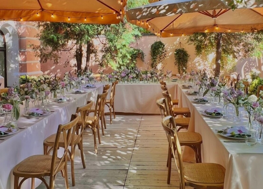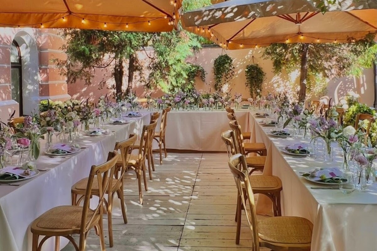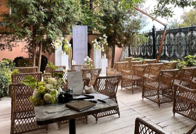 Ресторан разделен на несколько камерных залов, каждый из которых обладает собственным стилем и настроением. Друг от друга залы отделяет мраморная лестница, ведущая на балкон зимнего сада – идеальное место для живой музыки. Летом во дворе работает уютная веранда с ротанговыми креслами в тени живых деревьев и больших светлых зонтов.