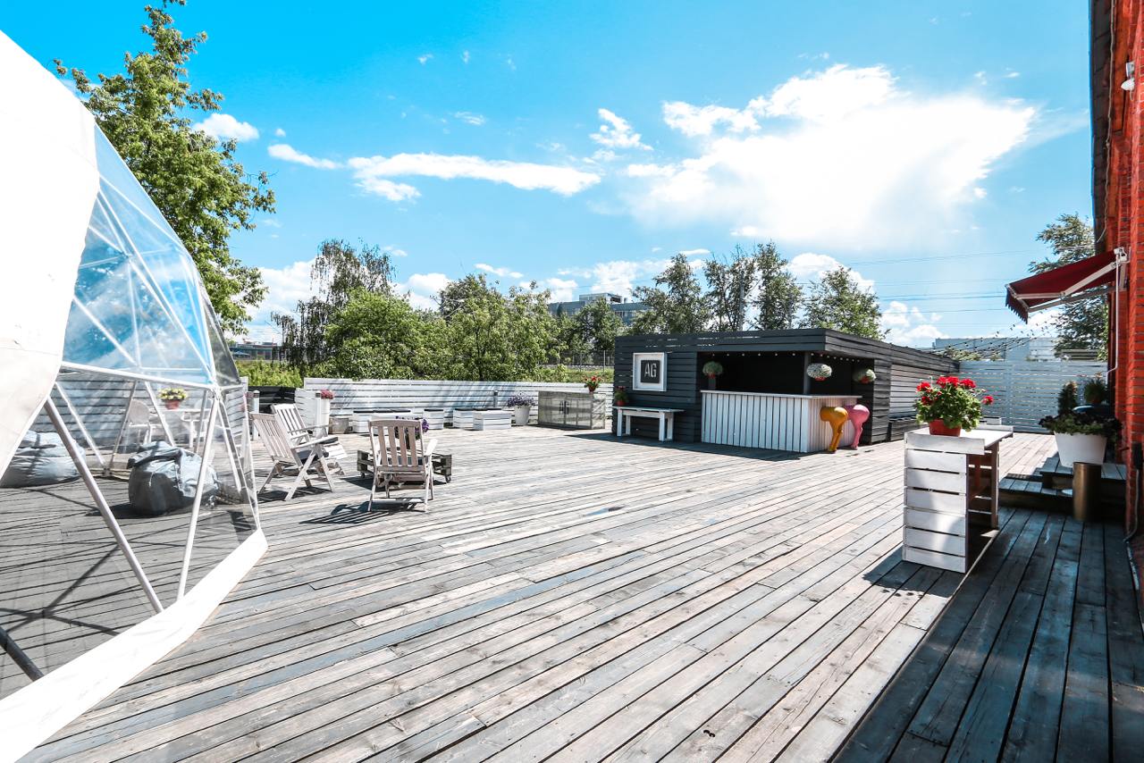 За отдельную плату зал может объединяться с верандой Крыша (500 м2), которая находится на том же уровне.