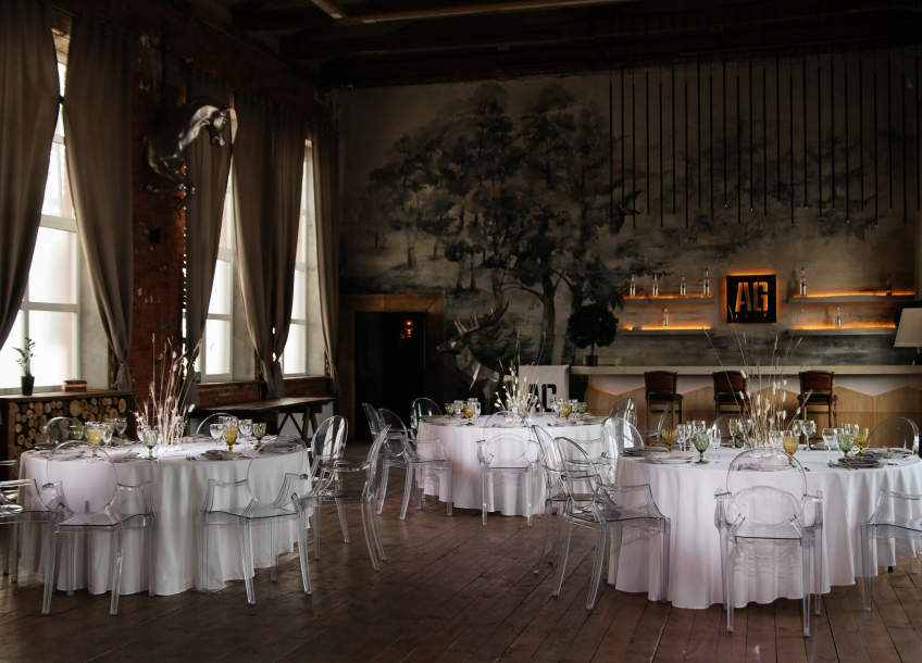 Эксклюзивная мебель, арт-объекты, высокие потолки, мобильная сцена, профессиональный звук и свет. Вместимость залов: от 25 до 800 человек.