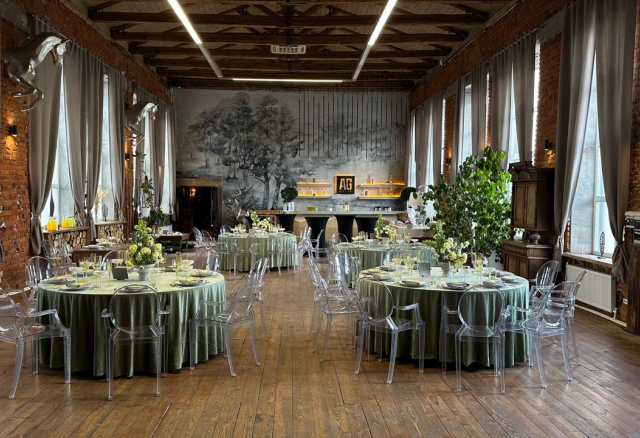 Дворцовое пространство, полное света и воздуха. Королевский зал вмещает портреты котов Эрмитажа на стенах, мебель в технике capitonne, колонны, мерцающие хрустальные люстры и рояль – австрийский, со 180-летней историей. Управляемый свет, шикарный звук и сцена, высокие распашные двери – вместе это великолепно организованного пространства, которое завершается видовой верандой на Яузу. Площадь зала – 350 м2.