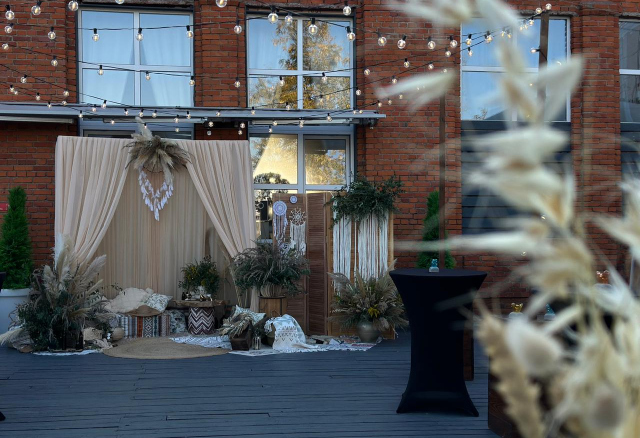 Двухуровневый белый лофт с галереей-балконом и верандой. Футуристичное, лаконичное, максимально востребованное фэшн-пространство. Площадь зала – 250 м2. Открытая веранда площадью 40 м2. Это уютная зона с мягким освещением гирляндами из лампочек, зеленью, столами, стульями, подушками и пледами.