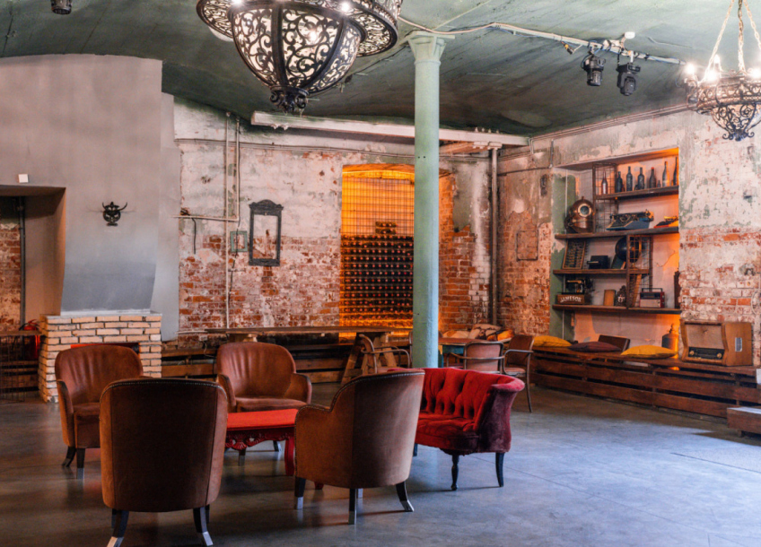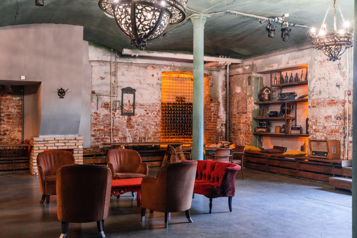 Эксклюзивная мебель, арт-объекты, высокие потолки, мобильная сцена, профессиональный звук и свет. Вместимость залов: от 25 до 600 человек.
