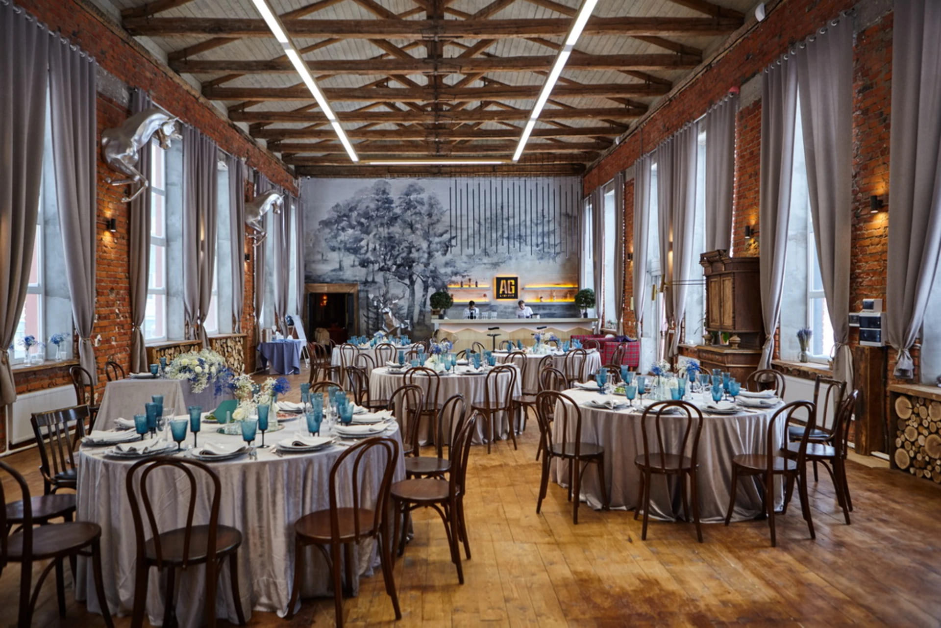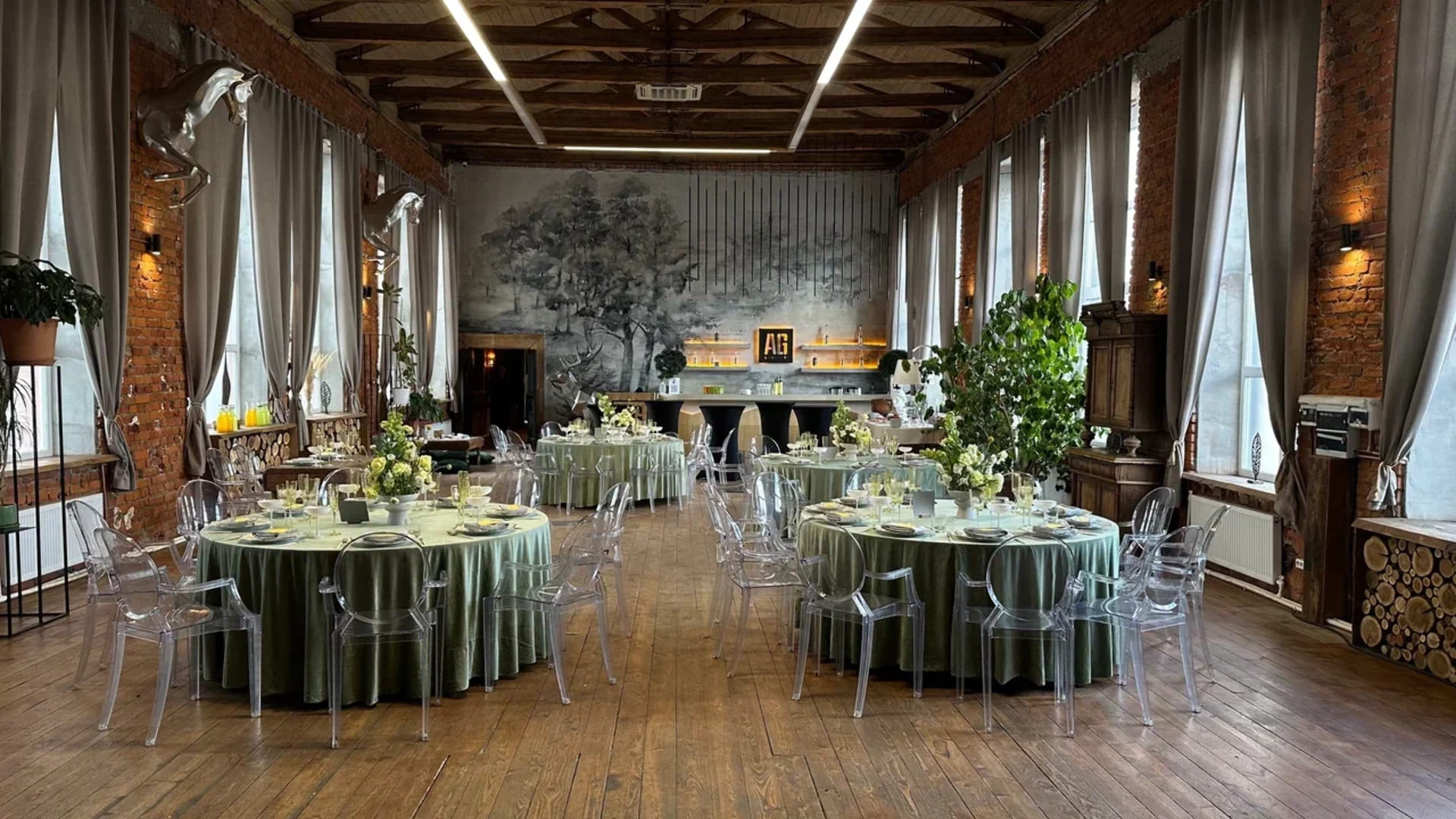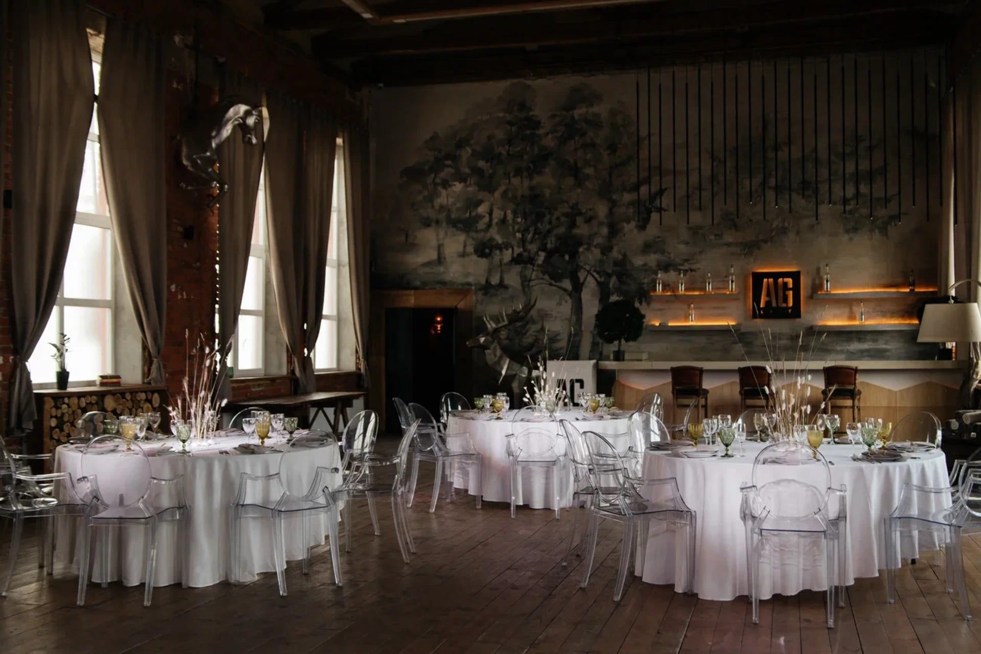 AG Loft – это 12 премиальных площадок с характером в двух локациях Москвы (Новоданиловская набережная и Курская). Вместимость залов: от 20 до 1000 человек. Над интерьерами работали британские дизайнеры и российские художники. Наши лофты – это внимание к истории места, открытые веранды, эксклюзивные мебель и декор, профессиональный звук и свет, авторская кухня.