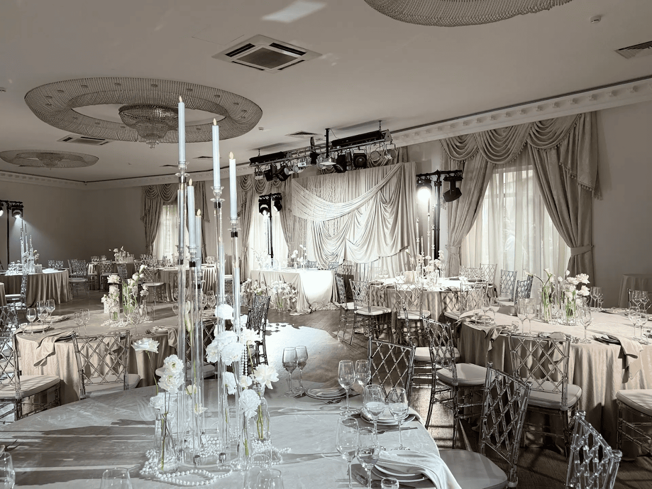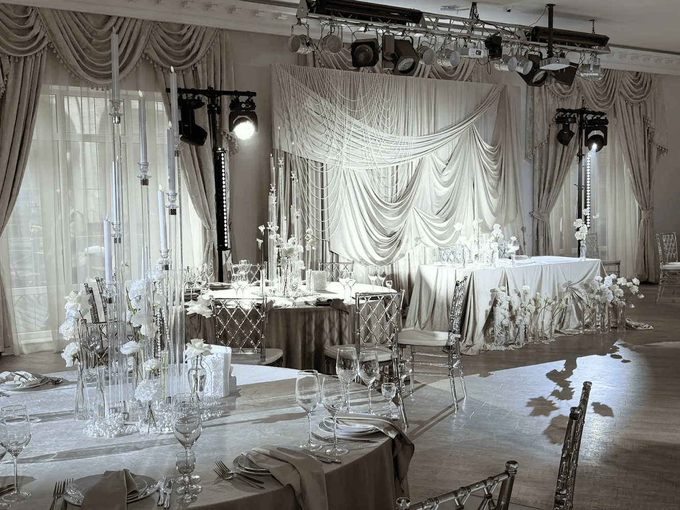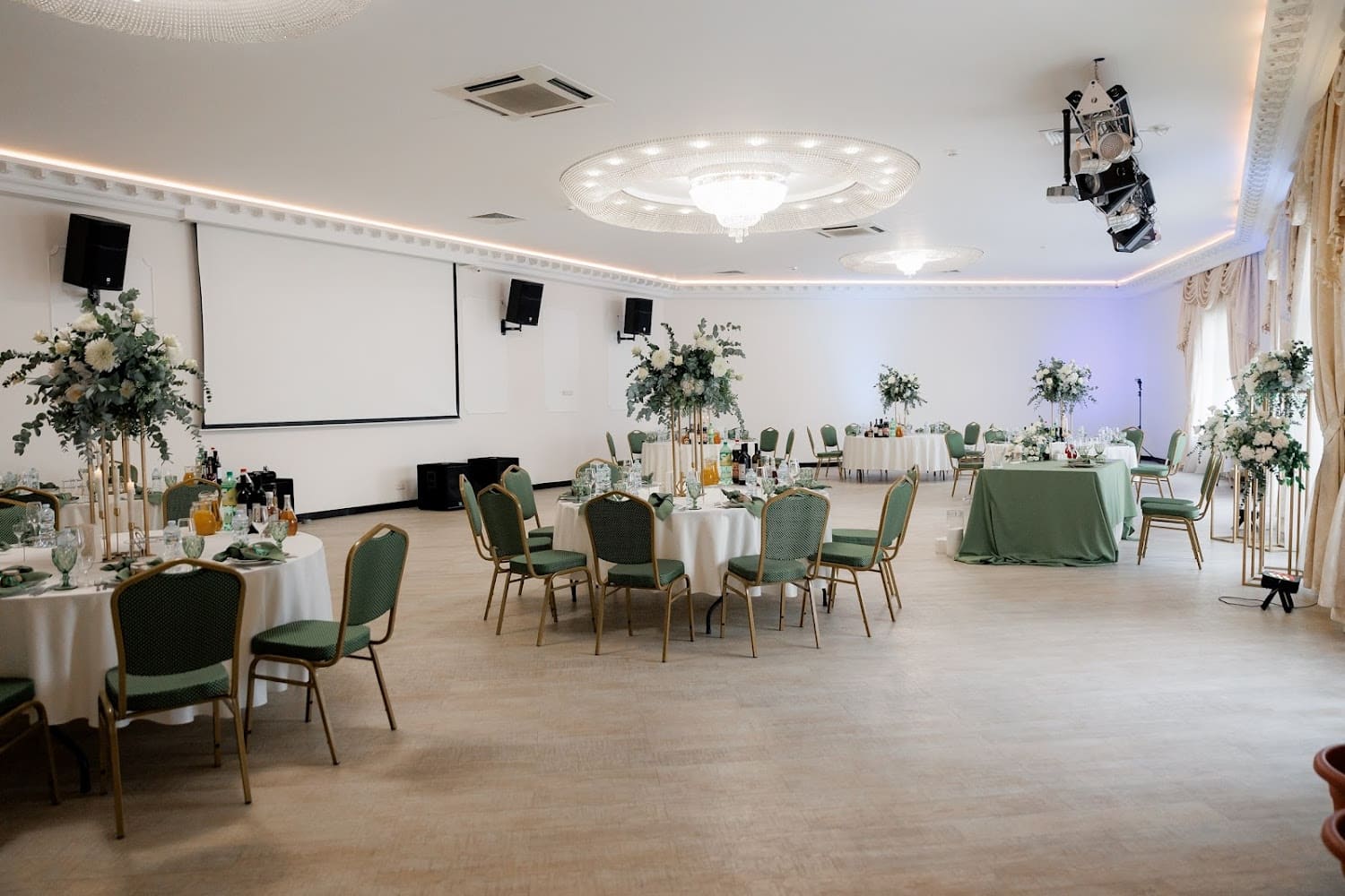 Мы предлагаем для Вашего мероприятия светлый банкетный зал в классическом стиле: