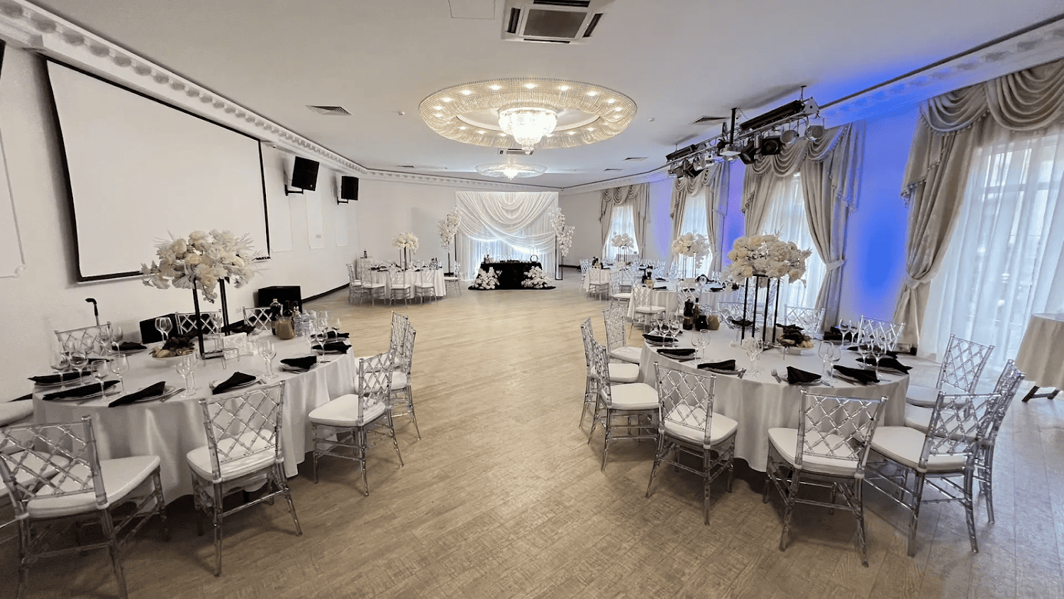 - профессиональная система кондиционирования воздуха, музыкальная аппаратура, экран с проектором, световое оборудование