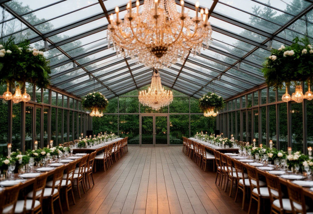 На территории комплекса имеется живописный сад, где возможно организовать выездную церемонию и фотосессию. В большом доме на берегу озера жених и невеста смогут провести утренние сборы, а также комфортно разместиться гости. Для проведения мероприятий имеется большой банкетный зал. Интерьер выполнен в светлых тонах, что позволяет использовать любое стилистическое оформление. В теплое время года торжественный банкет возможно организовать в просторном купольном шатре с панорамным остеклением. Также на территории комплекса есть SPA-зона с бассейном и собственный пирс.