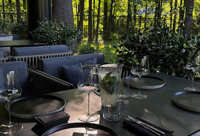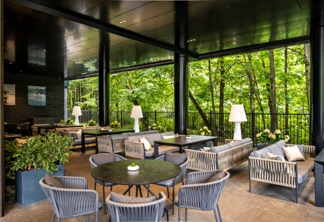 - Возможность провести церемонию на природе. Территория отеля – это современное здание, расположенное в окружении лесопарка, с собственной зелёной территорией, парковкой и летней верандой.