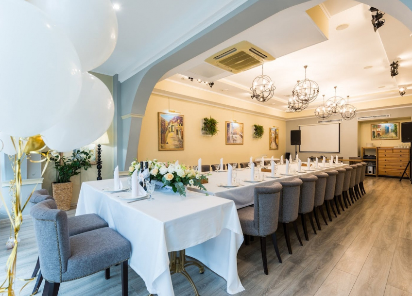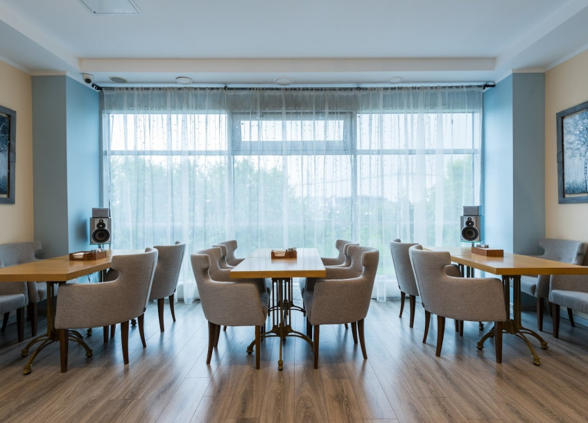 Находится заведение на территории ТЦ «Фокус» . К услугам гостей — два зала и отдельный зал для проведения банкетов и торжественных мероприятий. Все залы очень светлые и просторные, оформлены в современном стиле и нейтральных пастельных тонах, с элементами восточного убранства.