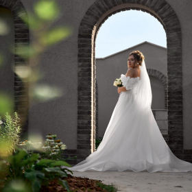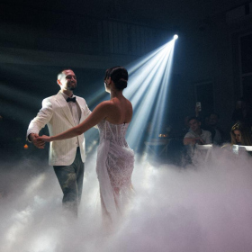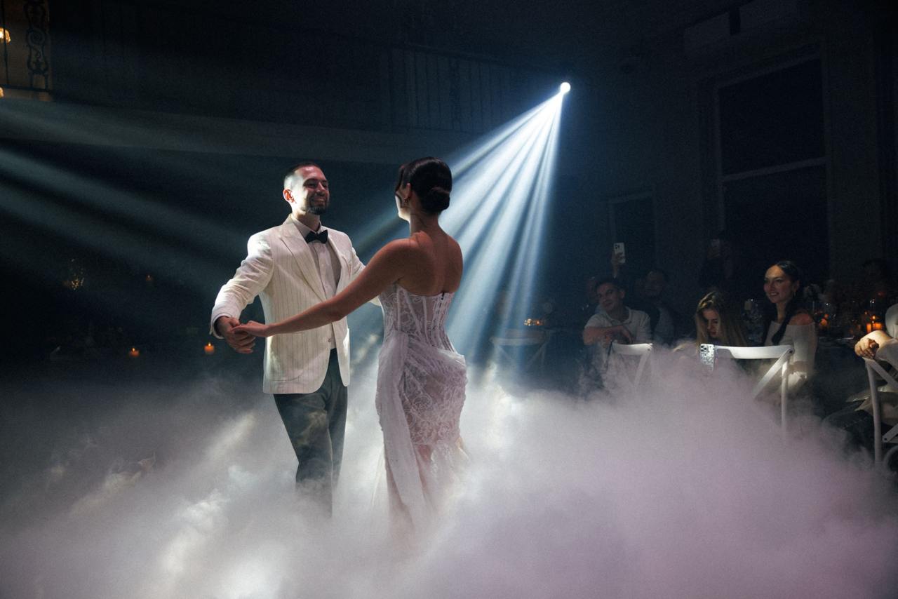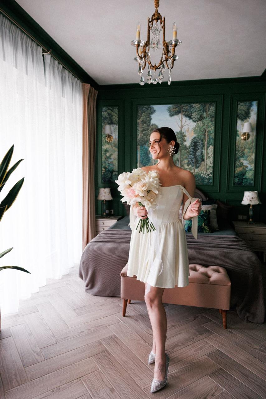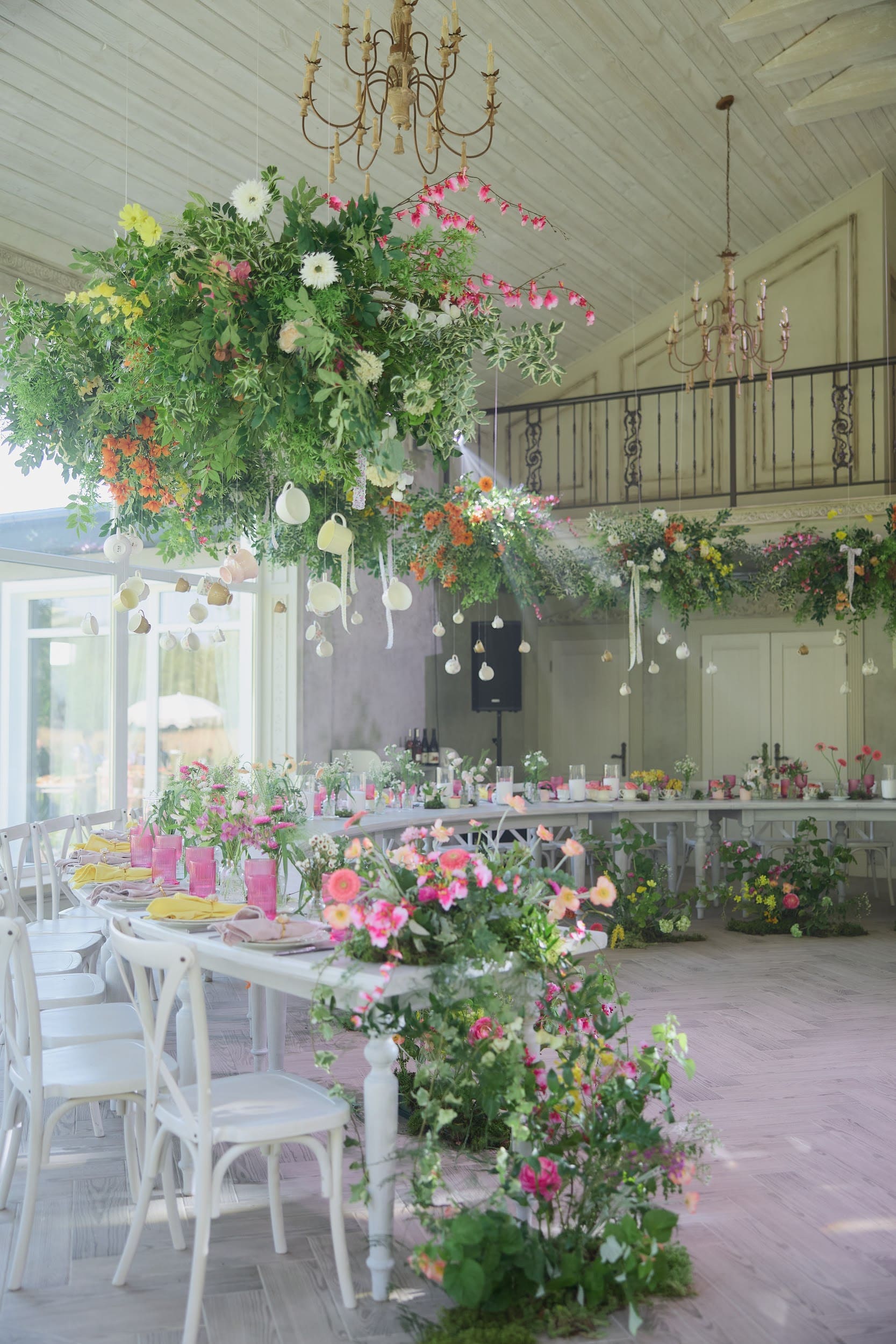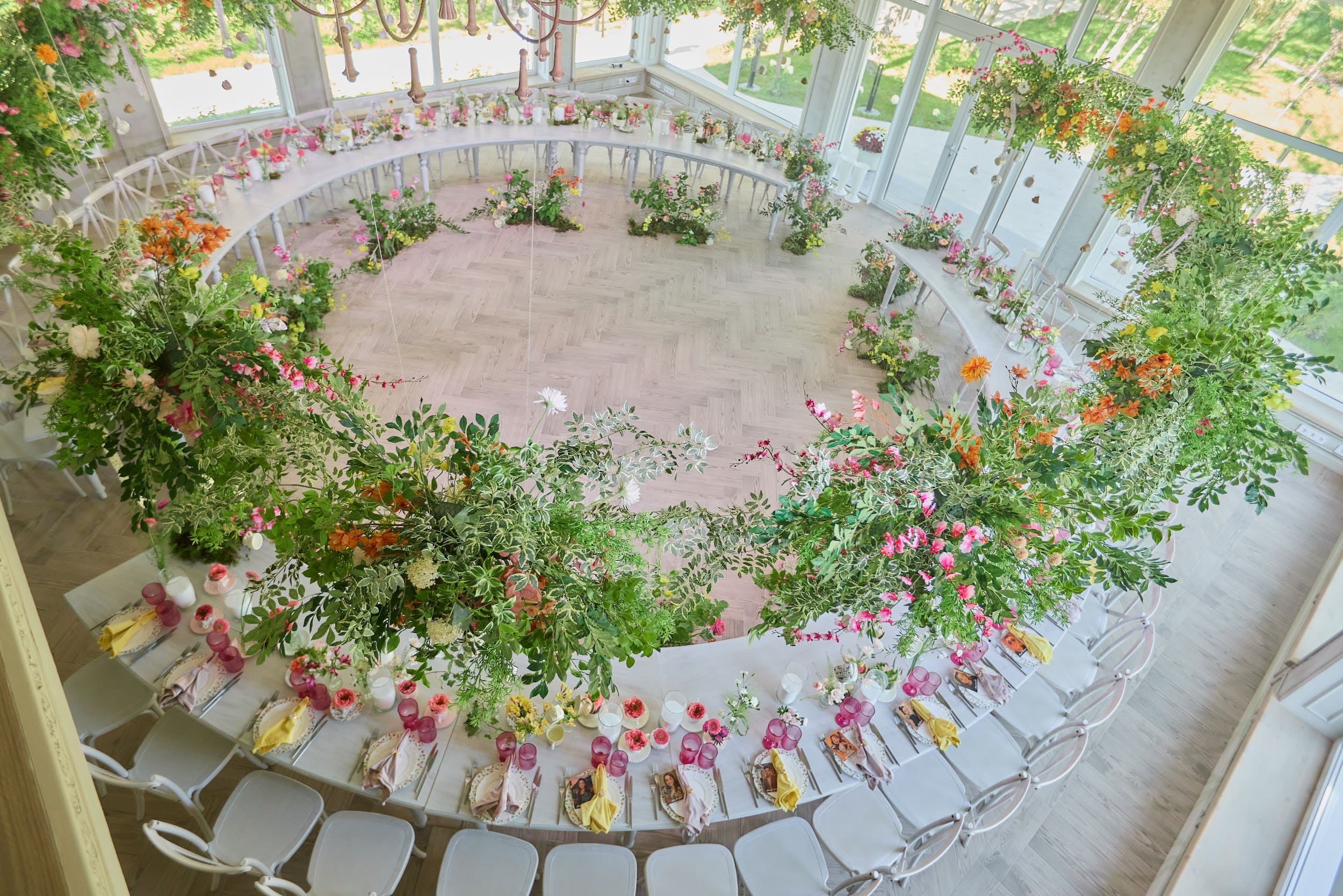 Панорамные окна дают много ественного света для красивых фото, а высокие потолки ещё больше придают залу воздушности.