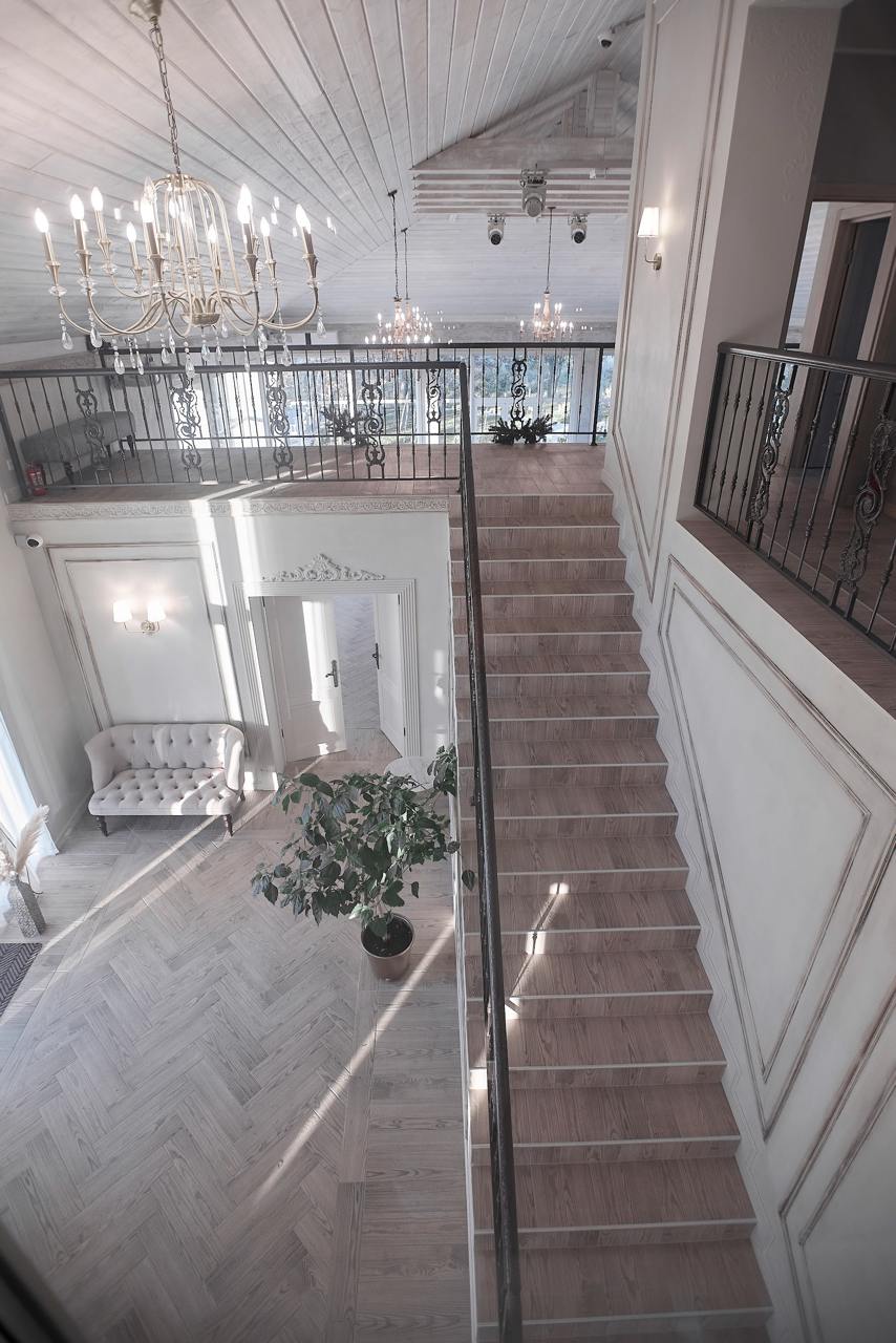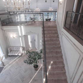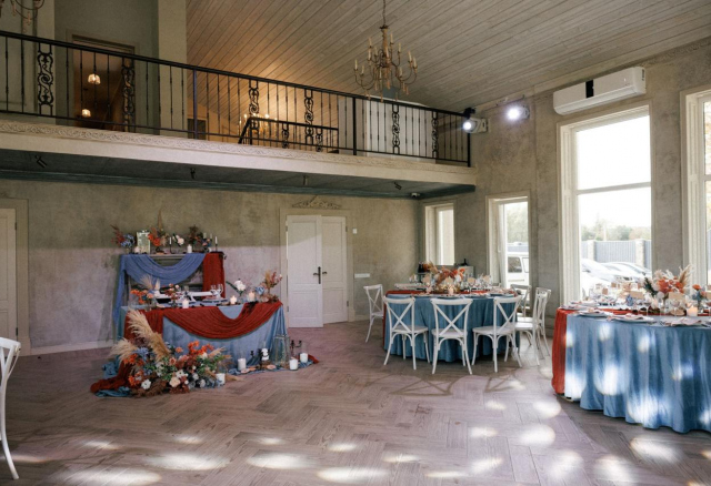 Стильный банкетный зал с балконом.