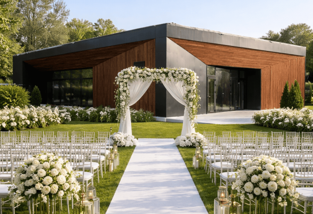 Шатер площадью 350 кв.м. идеально подойдет под мероприятия любого формата: свадьбы, банкеты, корпоративные праздники, тимбилдинги, презентации, выставки и спортивные турниры. GOHall оснащен всем необходимым техническим оборудованием, а также лужайкой для проведения выездных регистраций. Круглогодичный шатер подходит для мероприятий в любое время года.