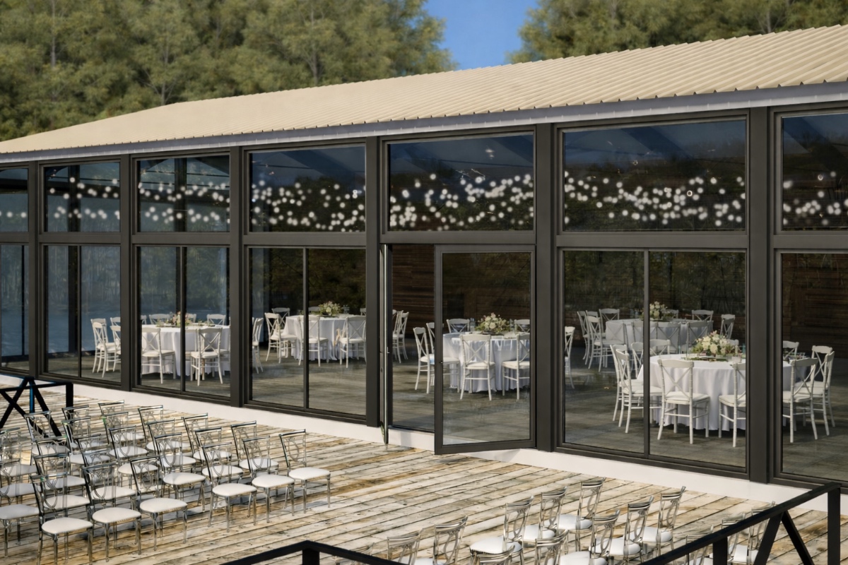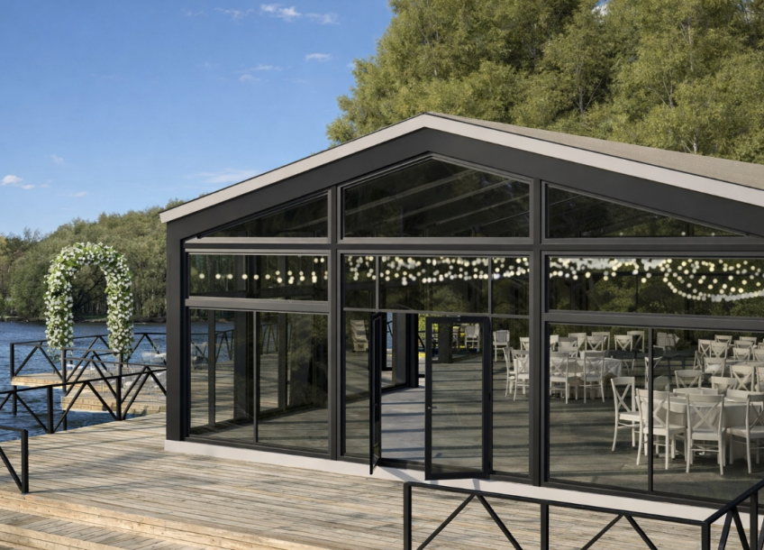 Просторный застекленный шатёр площадью 260 м2, который расположен на берегу Пироговского водохранилища с потрясающим видом на лес и прилегающие зеленые поляны. Шатёр находится вдали от городского шума в окружении живописной природы. Имеет свою террасу над водой, благодаря чему у Вас появляется возможность провести выездную регистрацию брака на фоне речной глади.