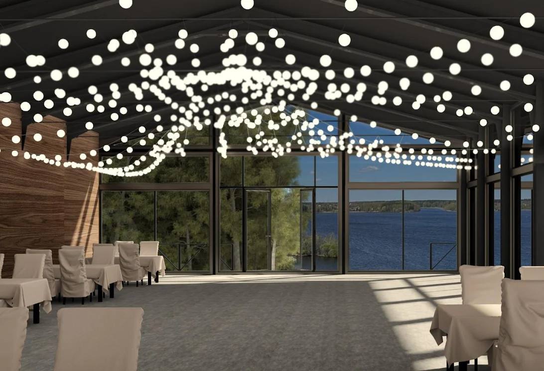 Комплекс расположен в лесу на берегу Клязьминского водохранилища, 8 км. от МКАД по Дмитровскому шоссе. Волшебное место для проведения свадебного торжества. Живописная природа березового леса создает романтичную, сказочную атмосферу, а впечатляющий вид на Клязьминское водохранилище чарует и завораживает своей красотой. На территории располагаются белоснежные арочные шатры. Просторная территория позволят провести выездную церемонию, масштабную вечеринку на свежем воздухе и запустить незабываемый свадебный салют.
