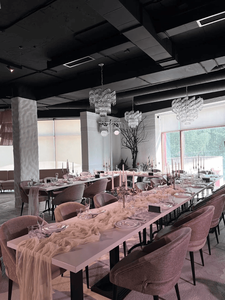 Зал выполнен в европейском стиле, имеет отдельный вход, выход на задний двор рядом с лесным массивом. Оборудован системой кондиционирования и подогрева пола, а так же имеет свой гардероб. Отдельно стоящее здание и охраняемая парковка.