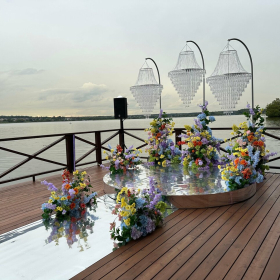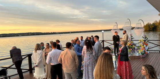 Новый уникальный проект от команды Кафе Среда и Загородный клуб Любовь. Наша площадка находится всего в 10 км от МКАД по Дмитровскому шоссе на участке, где никогда нет пробок. Стеклянный банкетный зал площадью 320 кв.м. расположен полностью на пирсе на берегу живописного Клязьминского водохранилища. Потрясающий вид на большую воду открывается с любой точки зала и зоны выездной церемонии. У нас можно запускать салюты, есть номера Люкс для молодоженов и уютные домики для гостей.