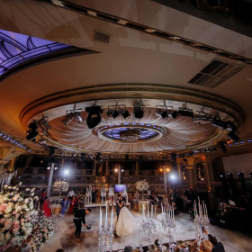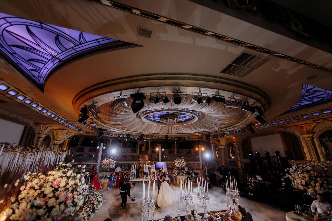 Круглый зал, поражающий изысканностью отделки. Здесь можно установить подиум или быстро превратить одну из сторон в сцену. На верхнем ярусе расположены VIP-ложи;