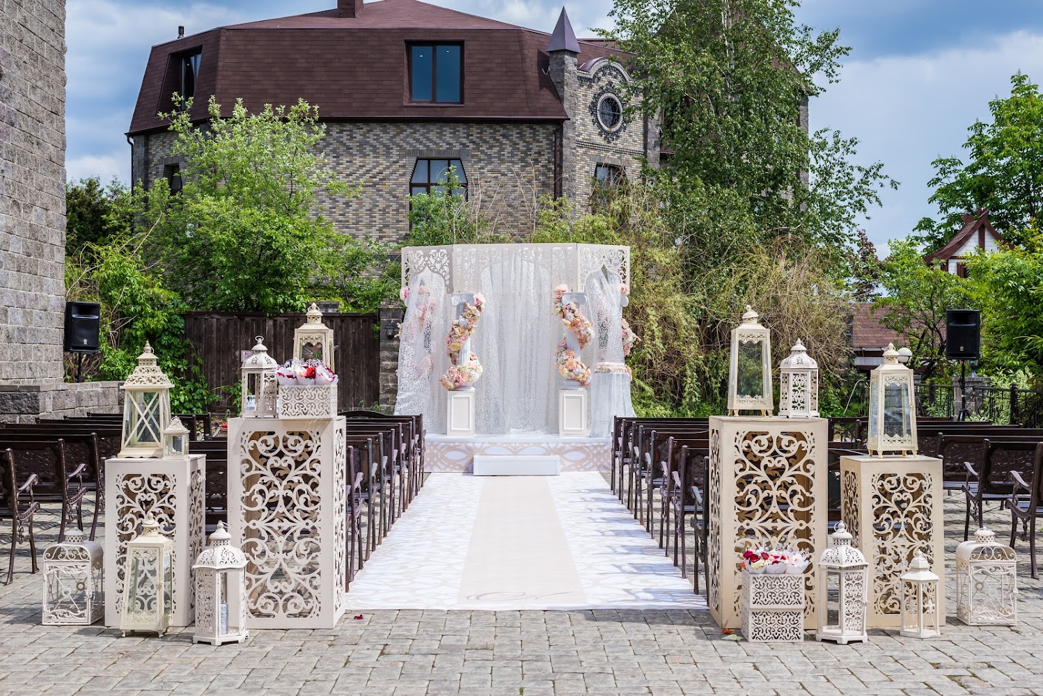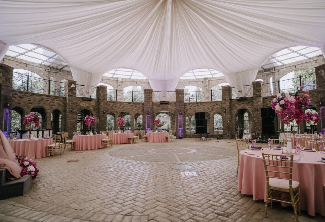 Комплекс располагает 5 различными по интерьеру и вместимости банкетными залами, внутренним парком со стационарным каменным Колизеем с тентовым куполом, рекреационными зонами, гардеробами, открытым паркингом, гримерными и техническими комнатами, уникальным свадебным пентхаусом.