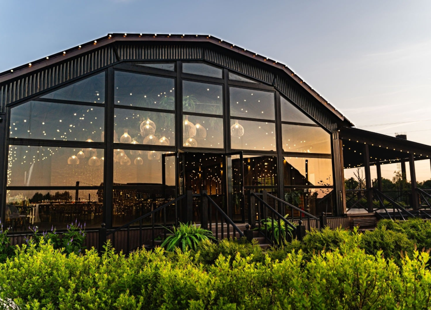 - просторная веранда, вместимостью до 120 персон. Обустроенная и уютная веранда для проведения вашего банкета в любое время года с прекрасными видами на природу;