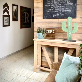 Наш дом располагается в живописном уголке Ранчо, вокруг прекрасная природа и уютные лавочки. Встретит гостей прихожая и символ нашей площадки - подкова! А это уже значит, что свадьба пройдет удачно. Всего в доме 3 комнаты, где комфортно могут разместиться 6 гостей.