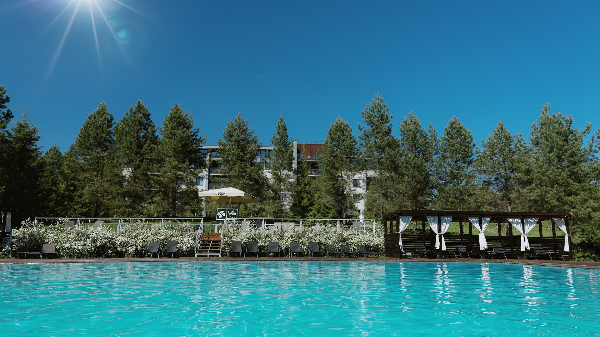 SPA-отель «СВЕЖИЙ ВЕТЕР» находится в 45 км от Москвы по Дмитровскому шоссе. К услугам гостей 3 корпуса на 170 гостиничных номеров и 16 коттеджей различной категории, где есть все необходимое для комфортного пребывания. На территории отеля расположены несколько ресторанов и специализированных залов, которые могут быть подготовлены для организации мероприятий любого формата: от изысканных фуршетов до грандиозных банкетов. Один ресторан и три банкетных зала расположены отдельно, на открытом воздухе и готовы принять гостей в летний период: с мая по сентябрь, все остальные залы доступны в любое время года.
