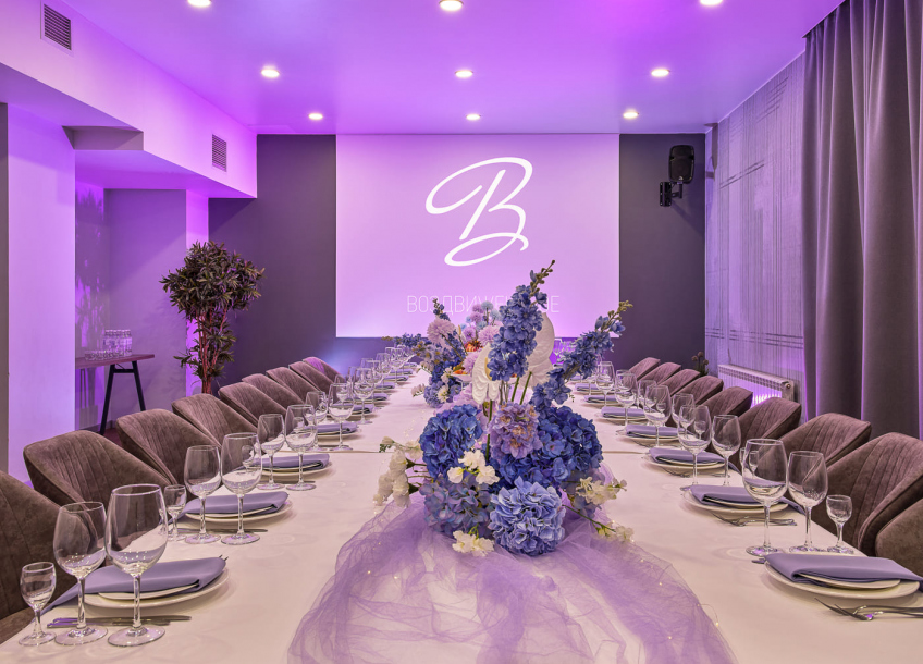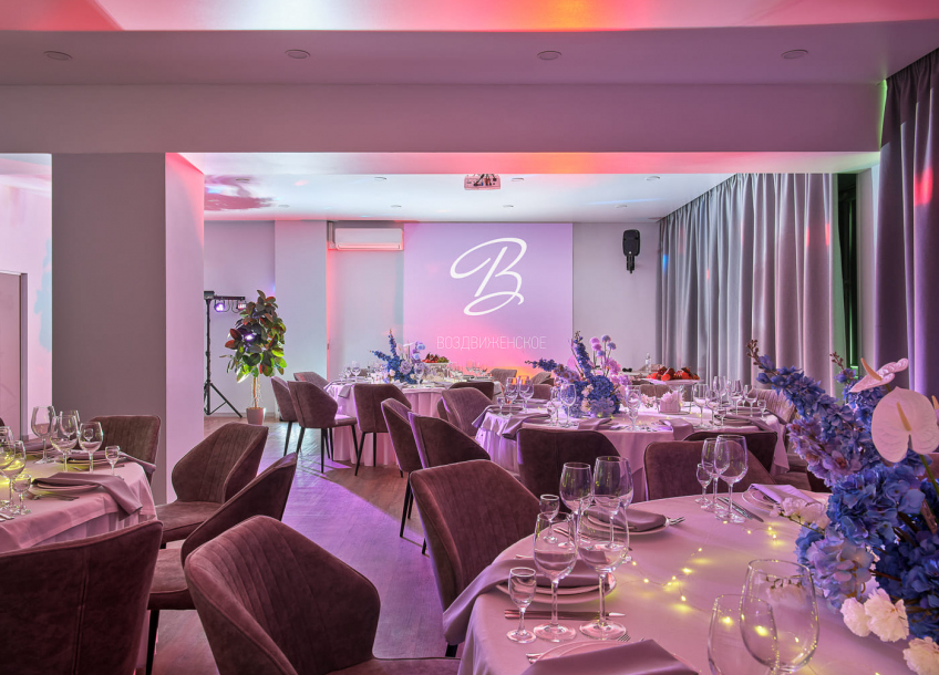В стоимость аренды входит: стулья банкетные, круглые банкетные столы.