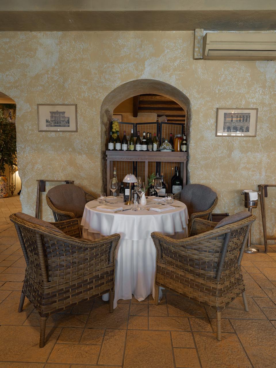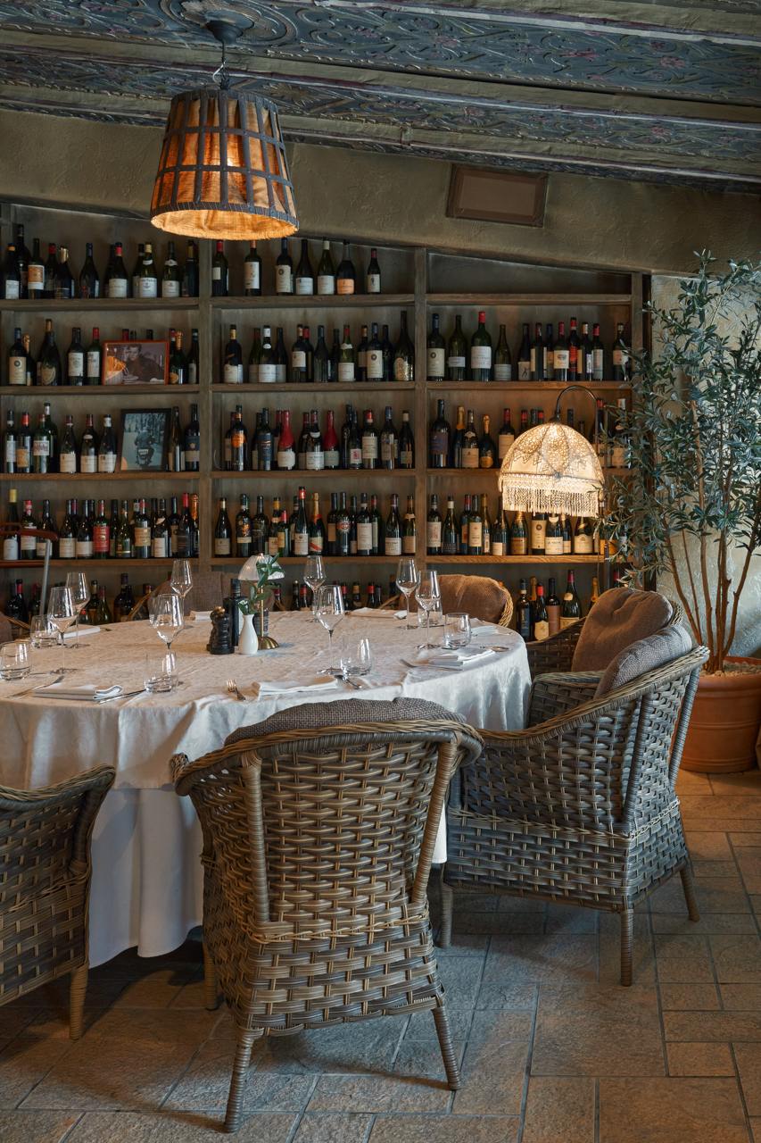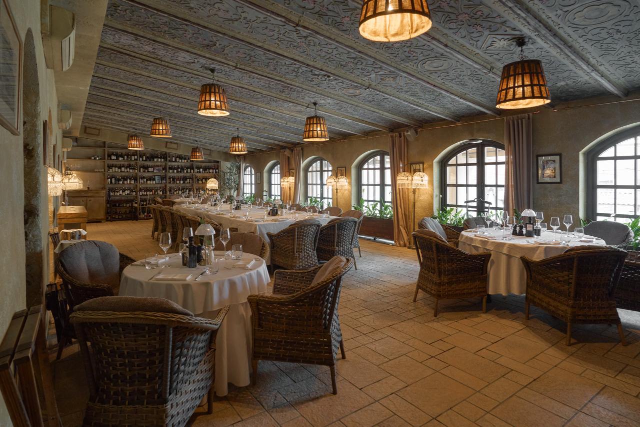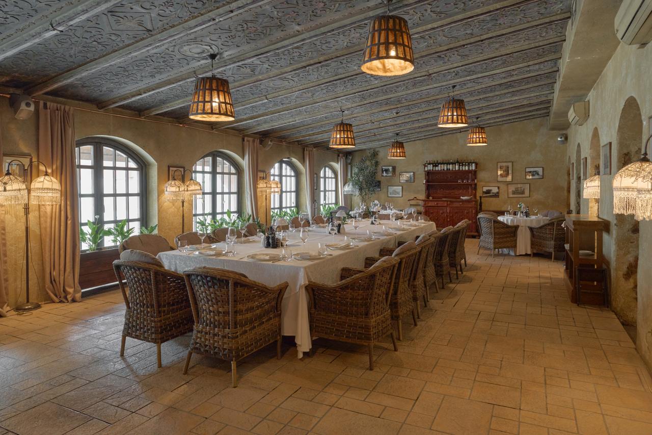 Зал - «Энотека» с действующим камином и вычурными канделябрами, идеально подойдет для встречи небольшой компанией до 20 человек.