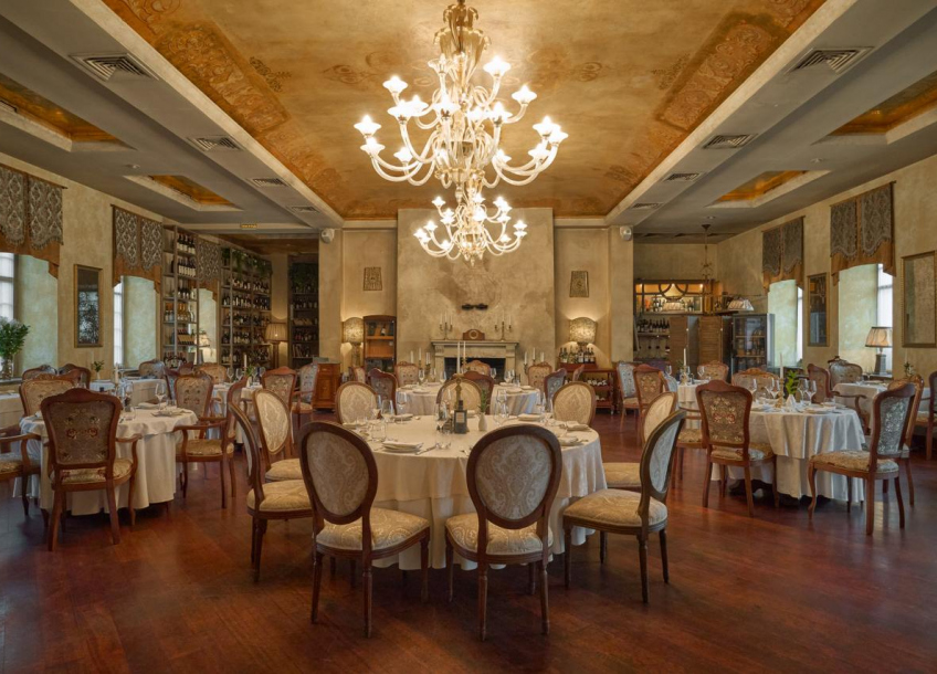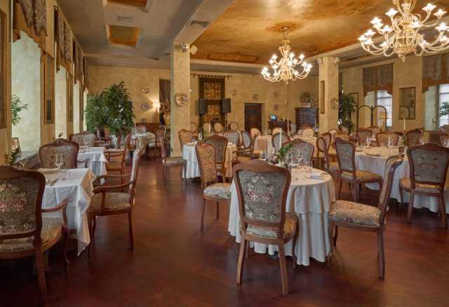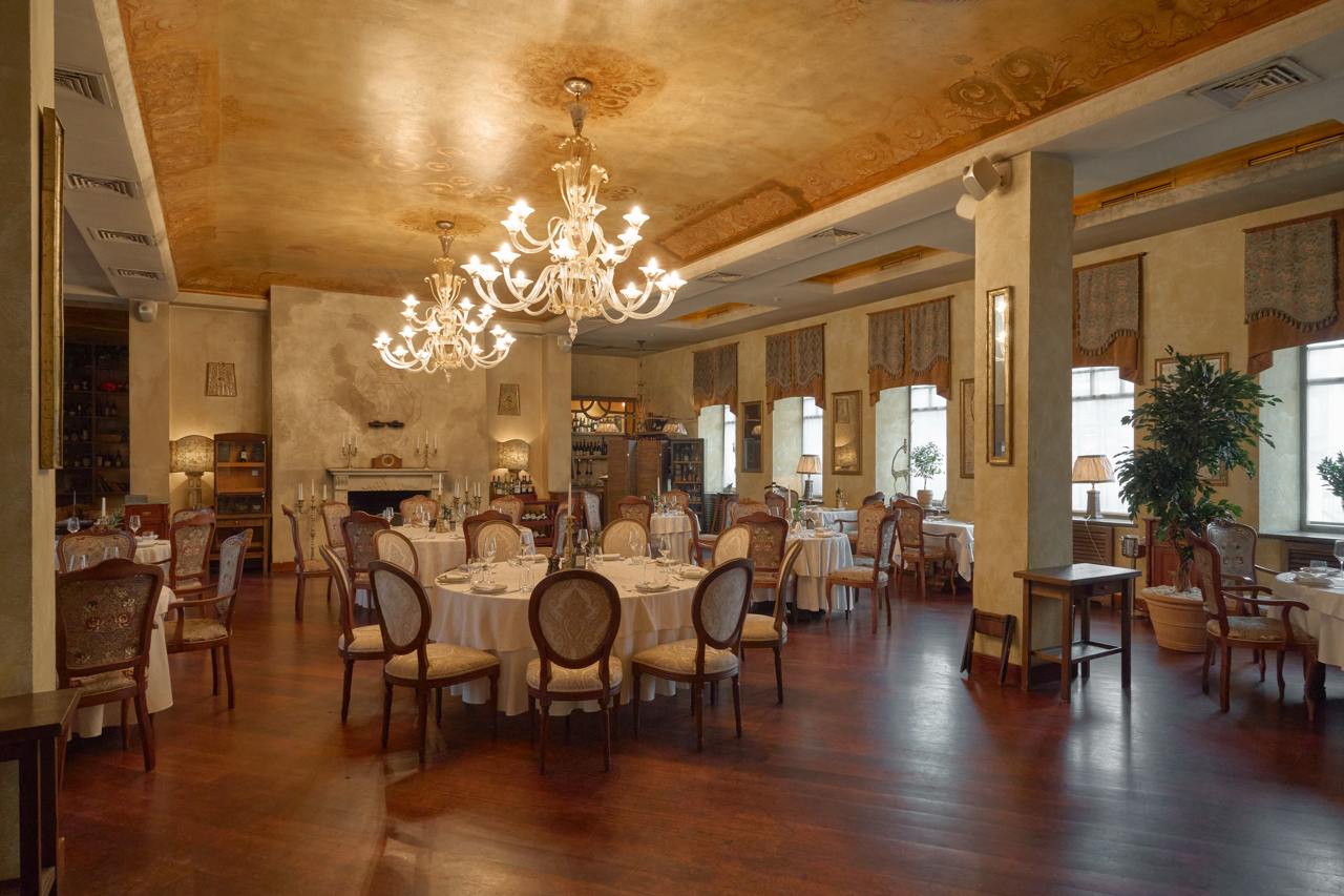 Первый этаж ресторана занимает камерный зал «Терраса». Пространство с ощущением уютной гостиной комфортно вмещает до 45 персон в формате банкета и до 60 гостей фуршетом. Старинные буфеты, живые цветы и мягкий свет на белых скатертях – здесь множество деталей располагают к неспешному ужину по важному поводу.