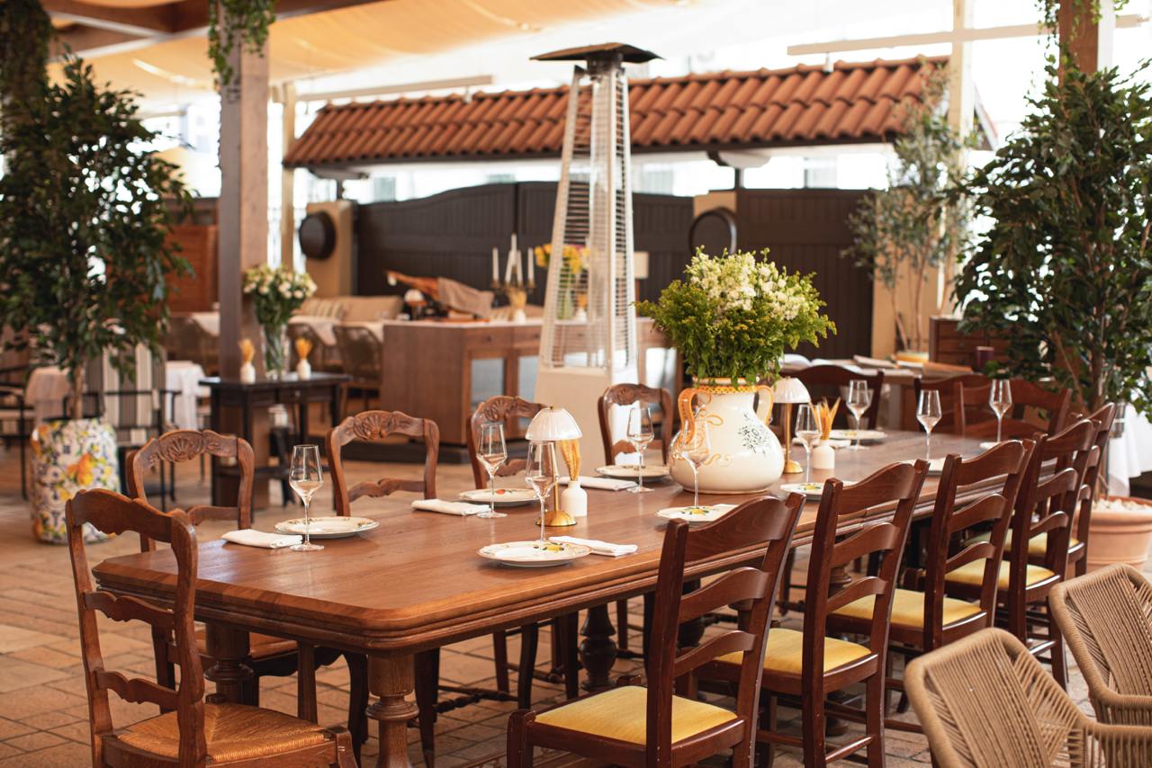 В теплое время года Bistrot  открывает легендарную летнюю веранду в средиземноморском стиле. Обновленное архитектурным бюро Archpoint патио с лимонными деревьями, журчащим фонтаном, зеленью и парящими парусами под потолком напоминает уютный сицилийский дворик, вмещающий до 110 человек банкетом. Веранда Bistrot словно создана для идеальной свадьбы в итальянской концепции или дня рождения в эстетике Dolce Vita.