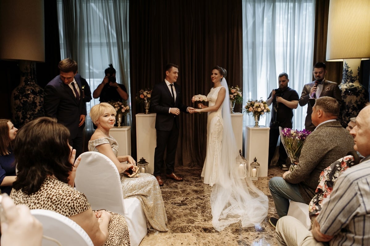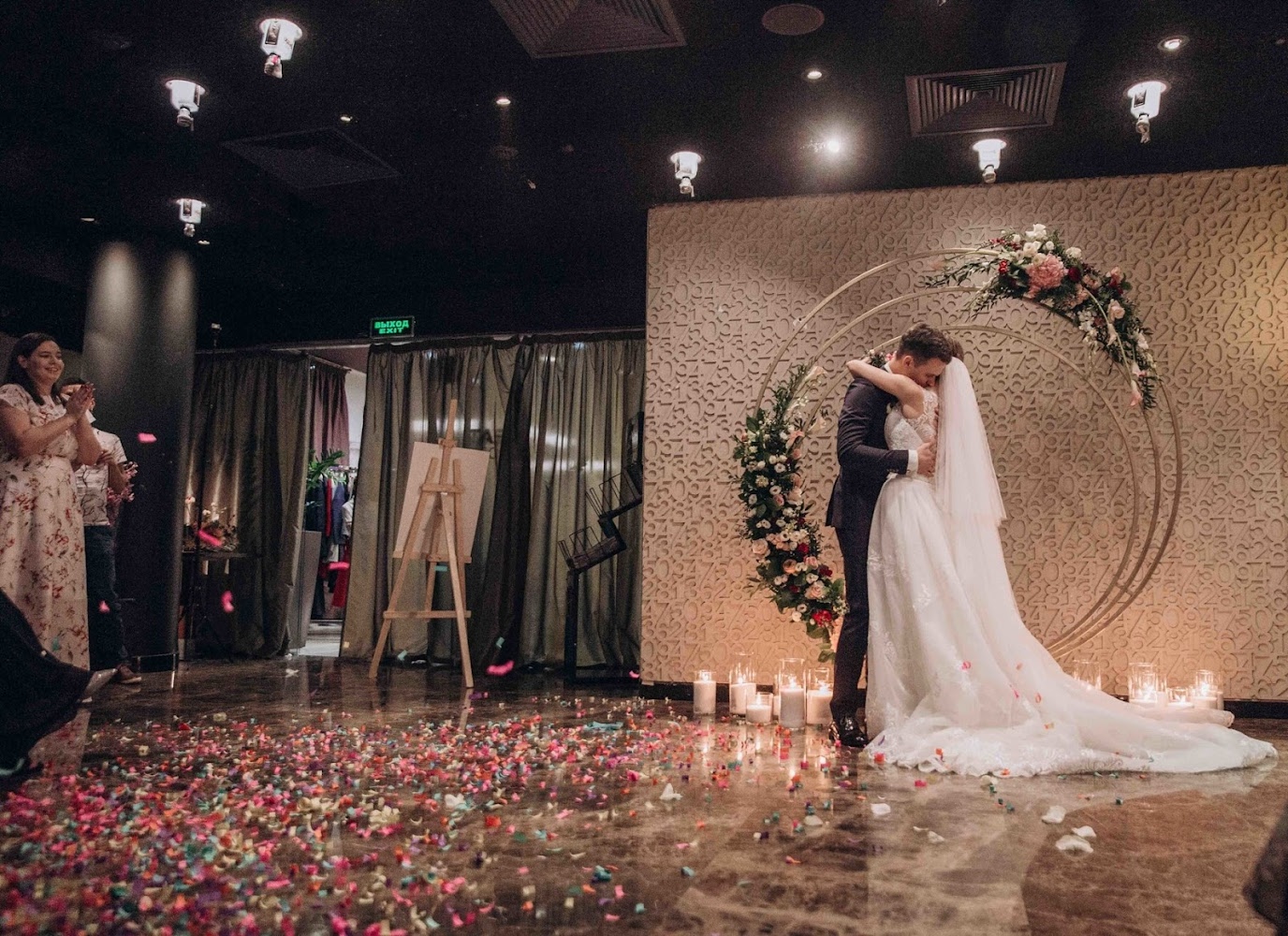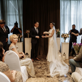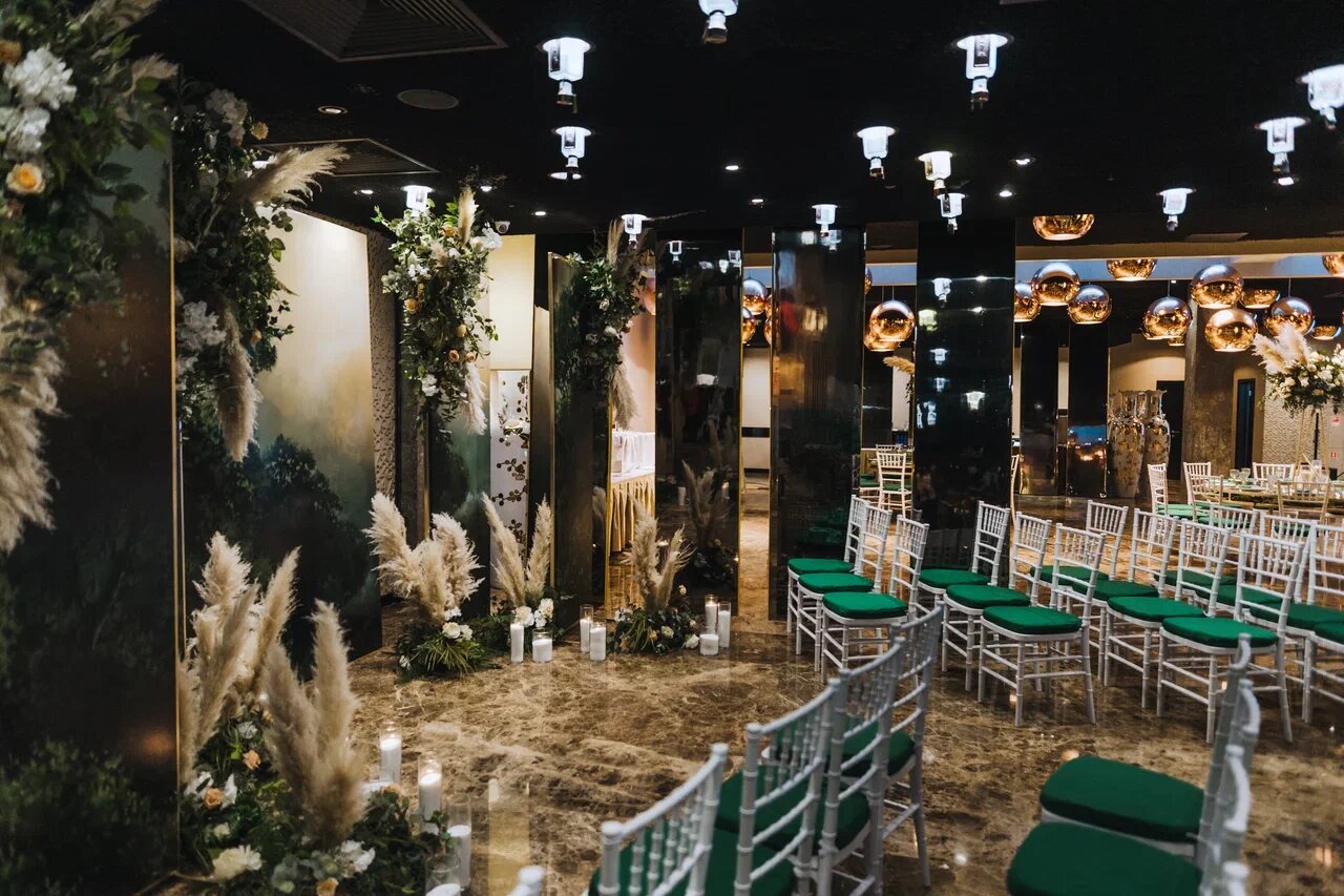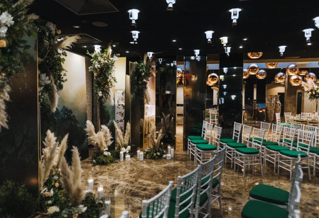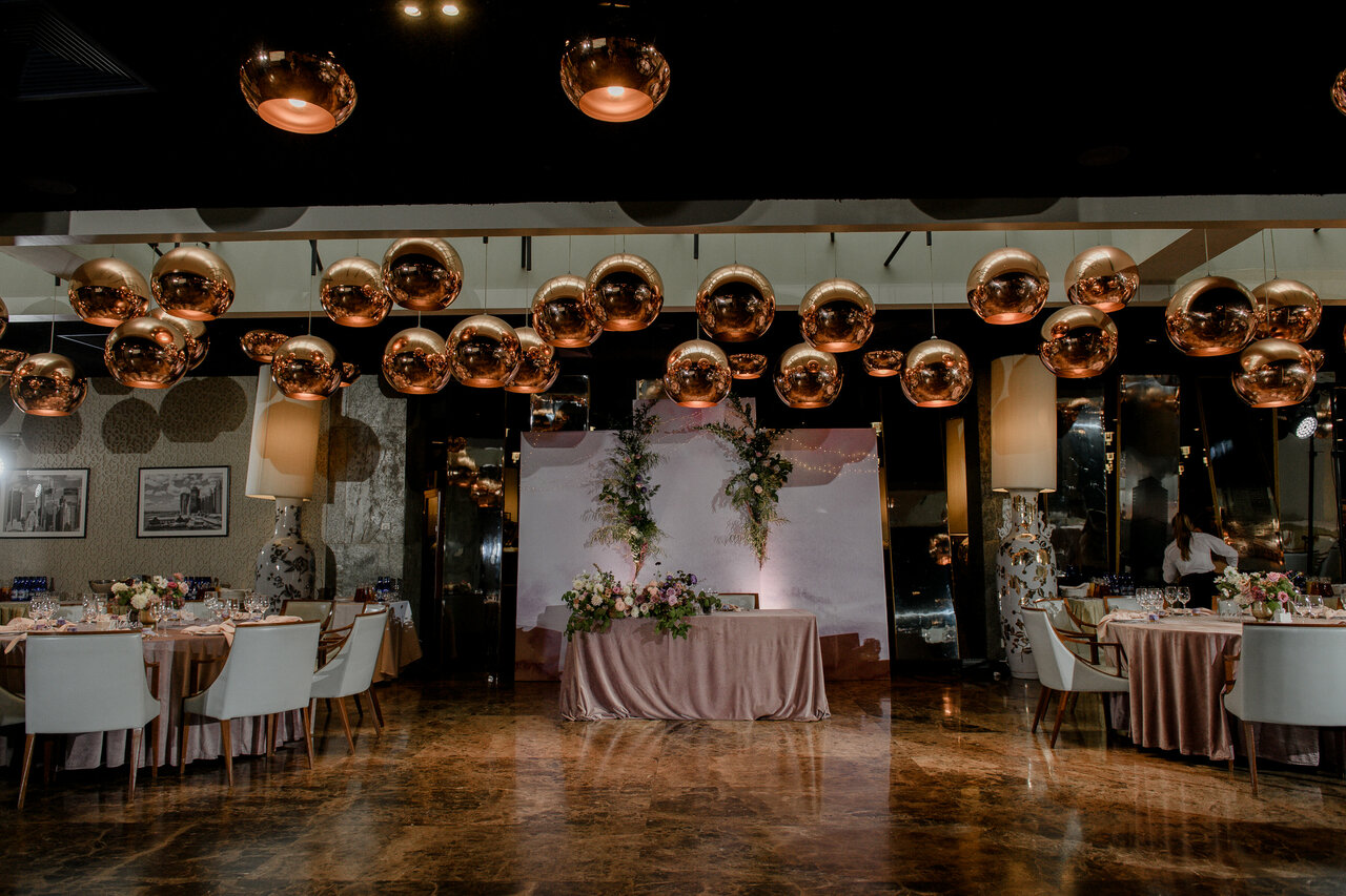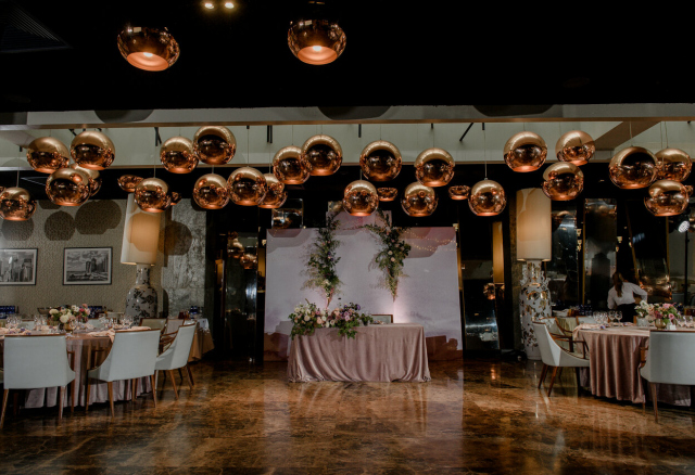 Уникальный VIP Lounge зал с неповторимым авторским дизайном площадью 42 кв.м. - идеальное место для проведения мероприятий до 30 человек. Свадебный банкет может быть организован как в виде фуршета, так и с классической рассадкой гостей и полным обслуживанием в уютном VIP Lounge зале. Зал идеально подойдет как для проведения свадебного ужина в кругу самых близких людей, так и для проведения церемонии выездной регистрации брака.