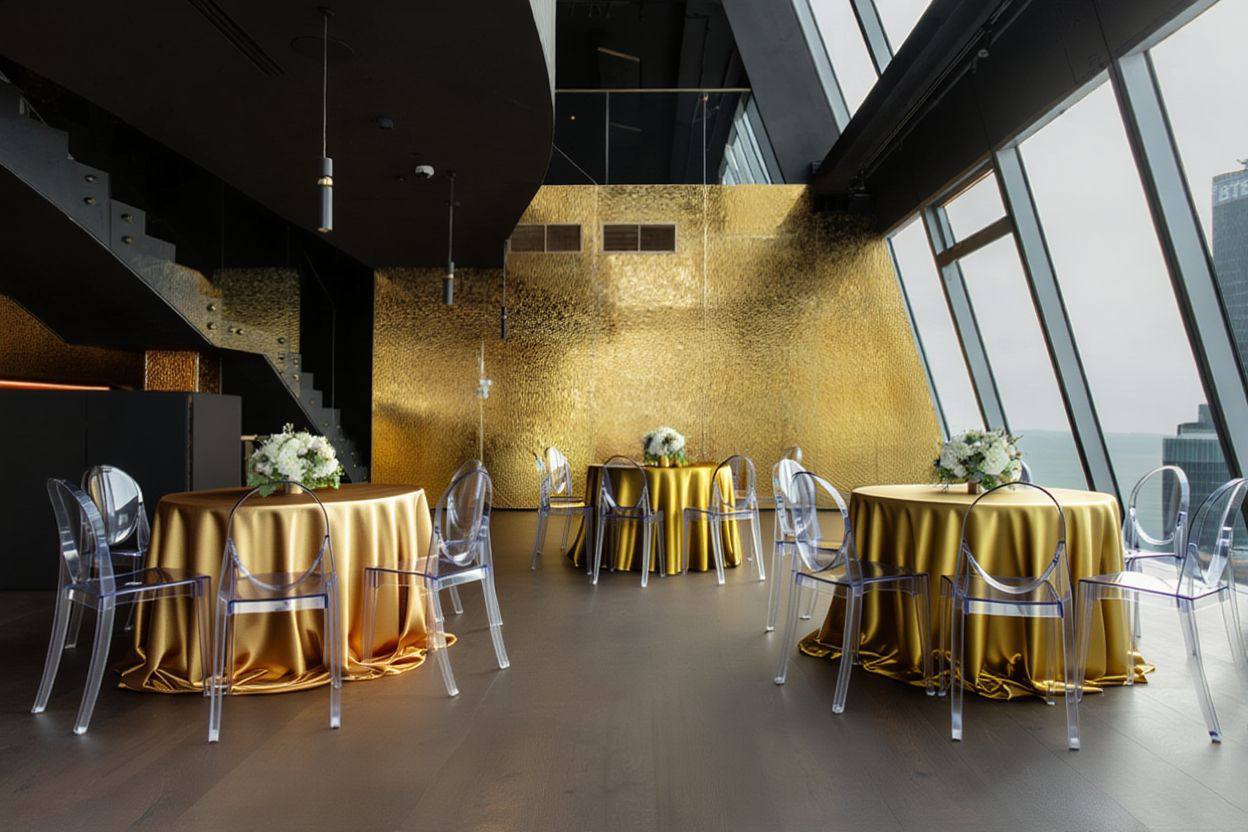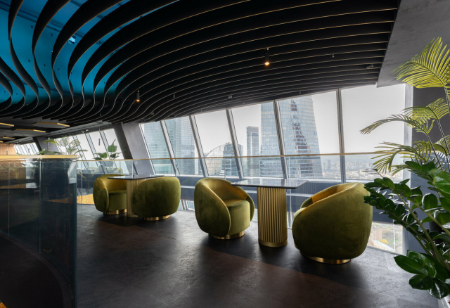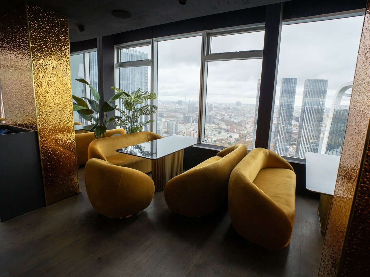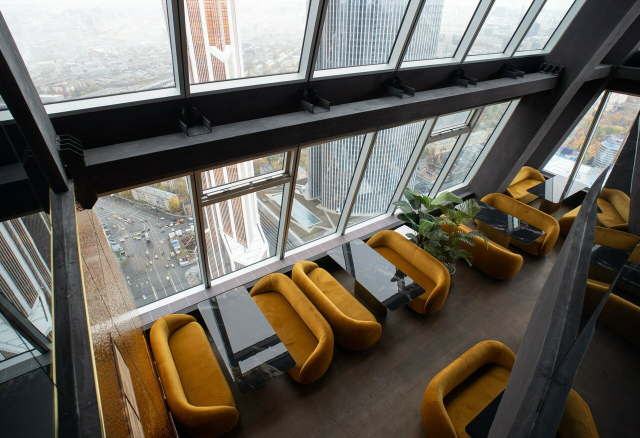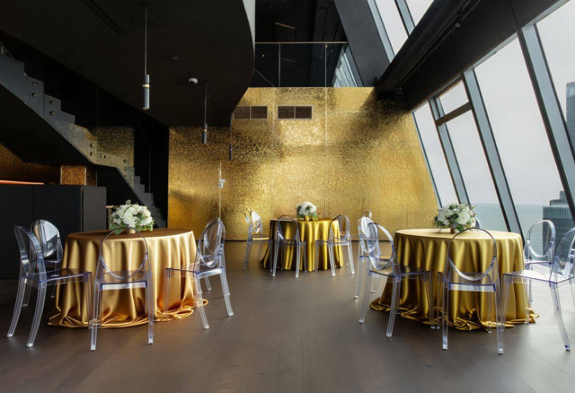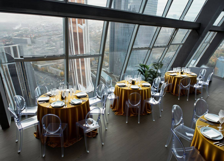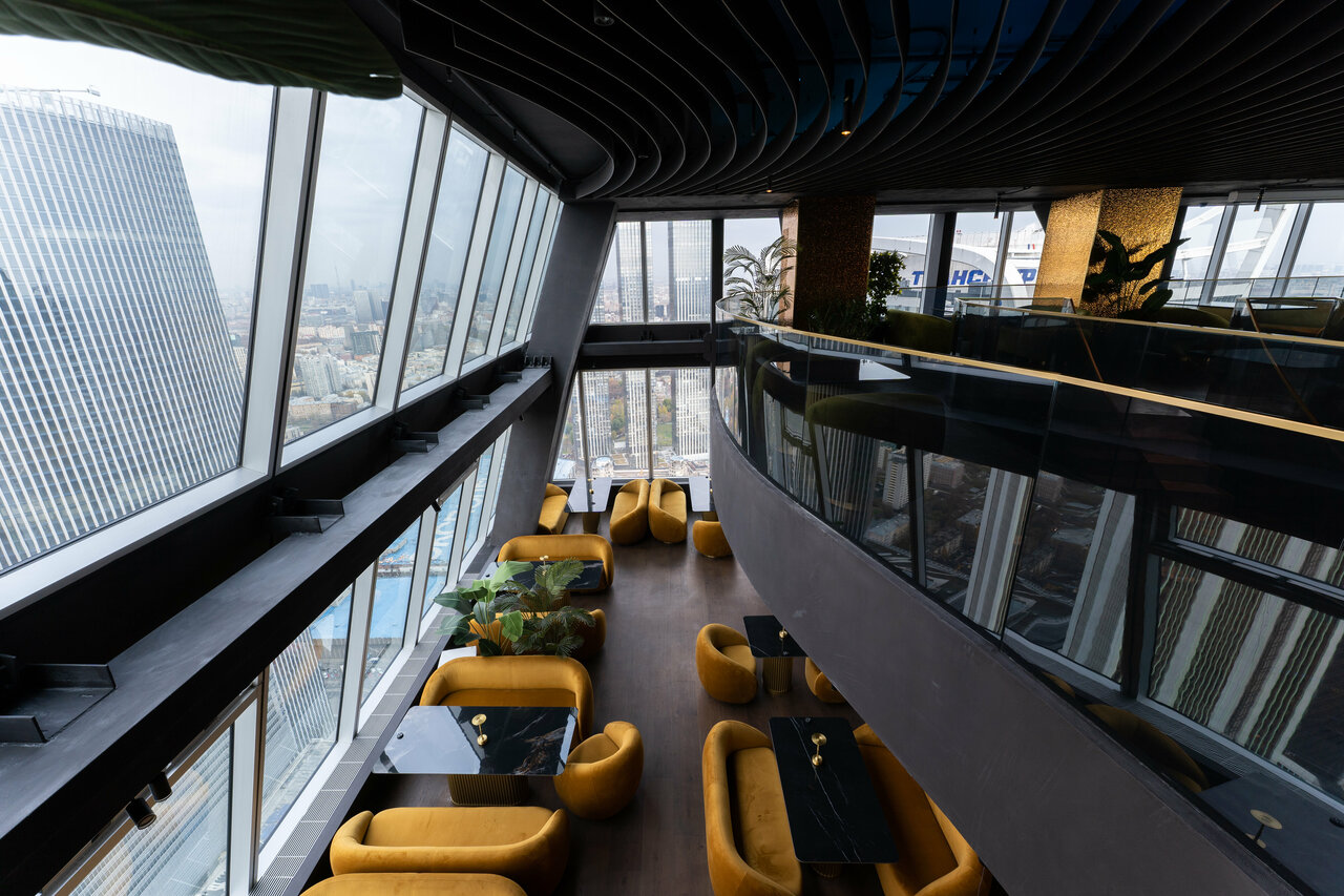 Облако 58 — современная панорамная площадка на 58-м этаже Москва-Сити, вмещающая до 250 гостей. Просторный зал с большими окнами обеспечивает мощный естественный свет и эффектные виды на город, что идеально подходит для свадебной фотосъёмки.