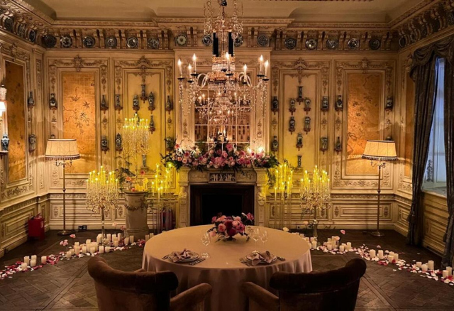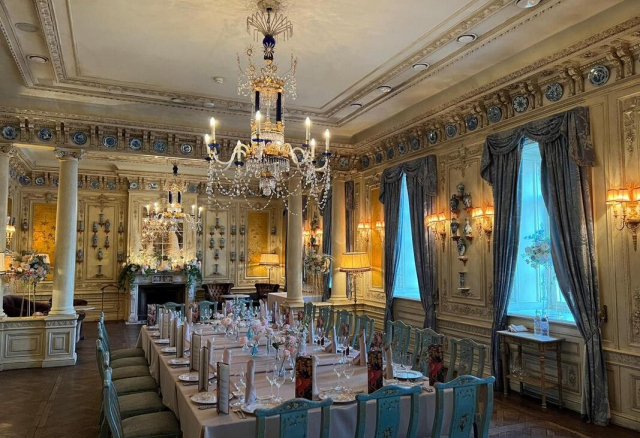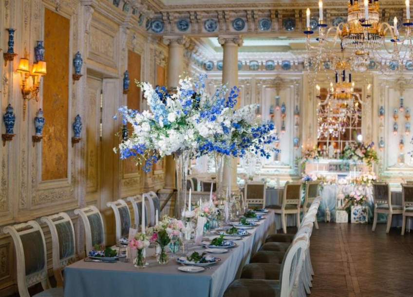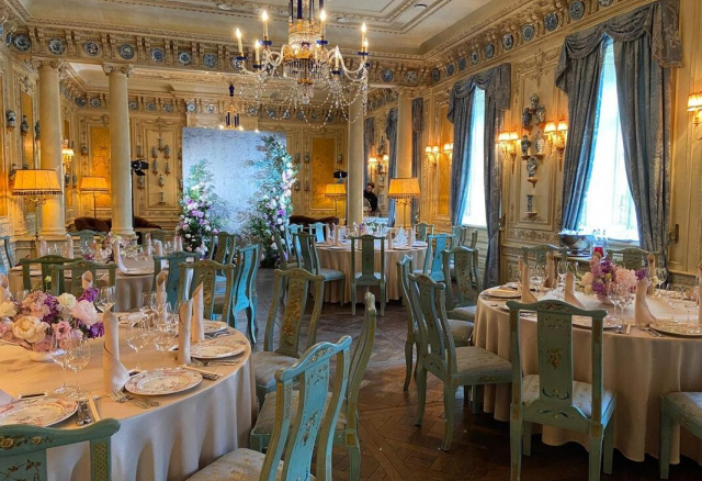 Роскошный, светлый, праздничный Фарфоровый зал выполнен в стиле неоклассики XVIII века. Такое решение продиктовано подлинными колоннами, сохранёнными в интерьере зала. Уютный треск поленьев в каминах наполнит атмосферу праздника теплом и уютом.