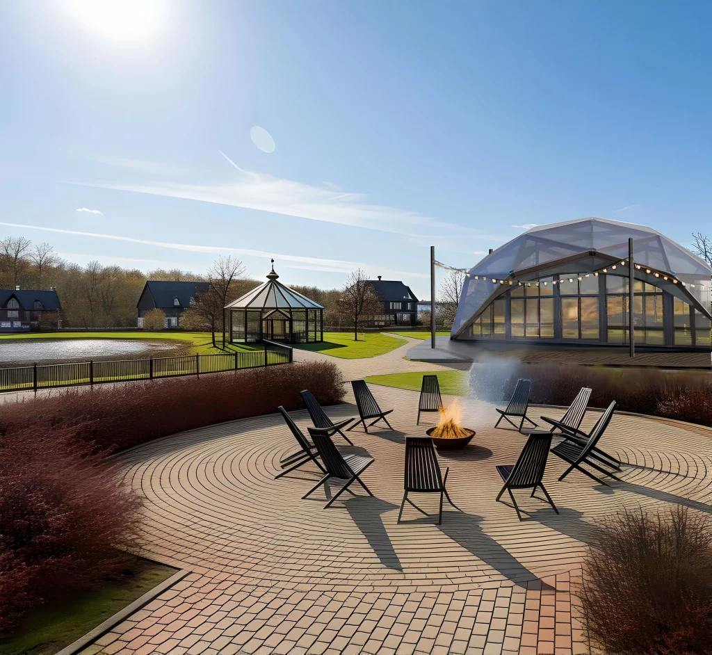 - В каждом шатре есть освещение и условия для установки звукового и свет. Площадка для фейерверков и вертолетная площадка