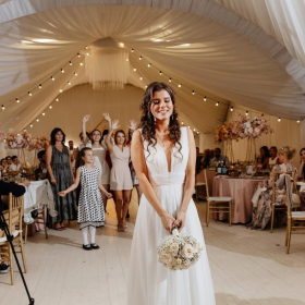 - Все шатры уже драпированы тканью и украшены ретро лампочками, что существенно сократит бюджет на декор. Мебель и текстиль входят в стоимость, стулья кьявари.