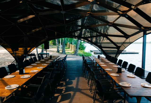 Новая открытая площадка на воде, расположенная на территории Рублевского пляжа. На удаленной территории от посетителей пляжа расположены два шатра, барная стойка и свободная проходная площадка.