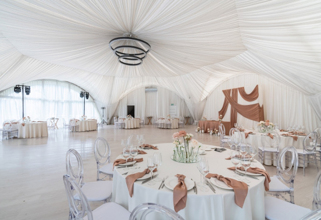 Шатер находится на территории музея-заповедника «Коломенское» с видом на «Восьмое чудо света» - деревянный дворец царя Алексея Михайловича Романова. Это уникальное место для проведения незабываемых мероприятий и торжеств. Отдельная территория для выездной регистрации брака позволит организовать все процессы удобно и комфортно.