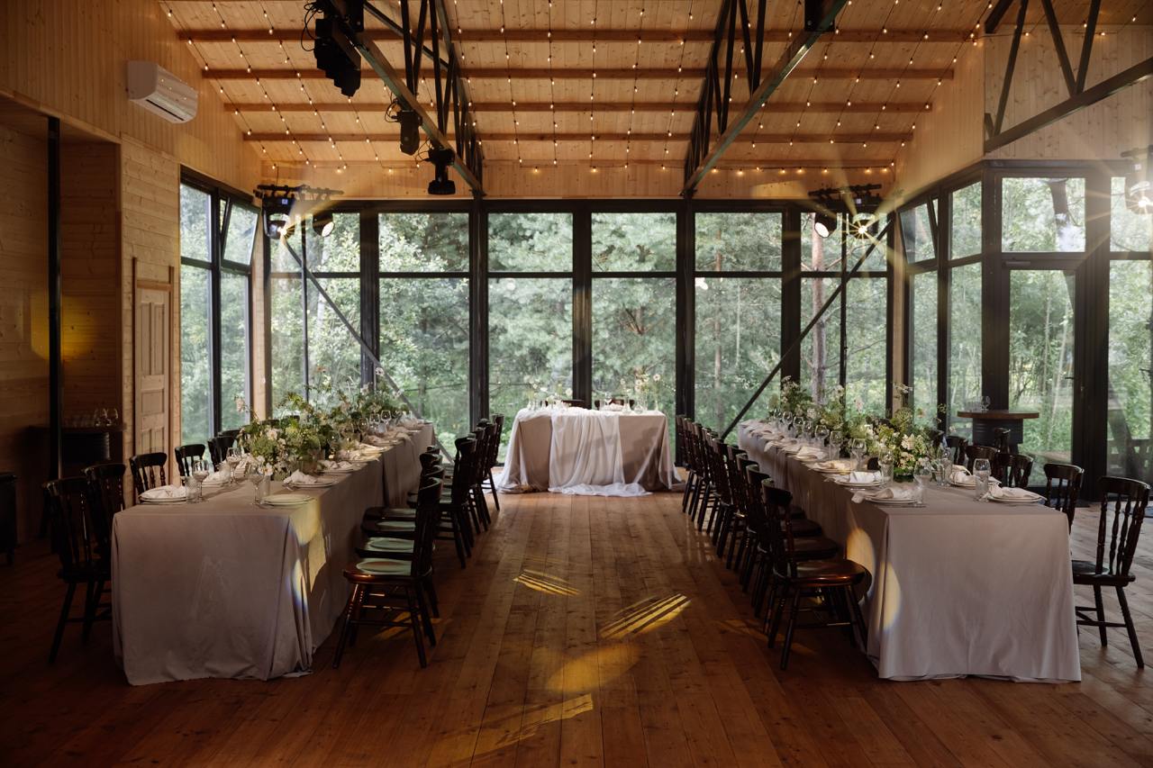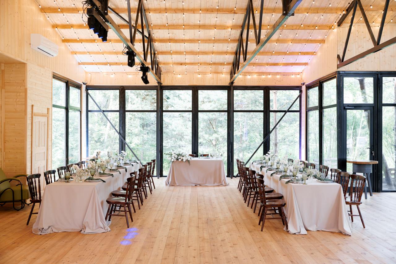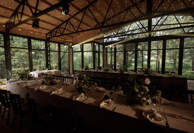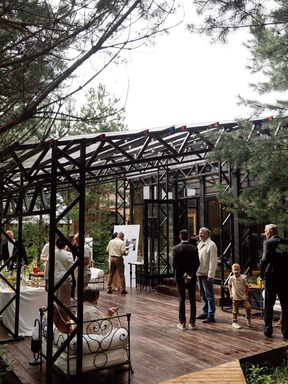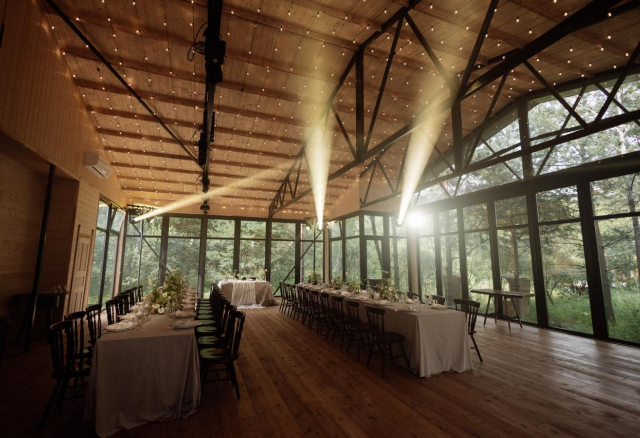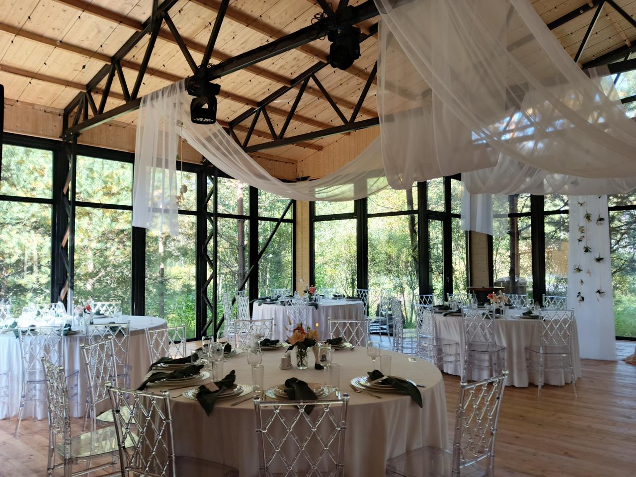 - банкетный зал состоит из 2-х частей - амбар (75 кв.м) и застекленная, утепленная веранда 150 кв.м. + крытая и открытая террасы