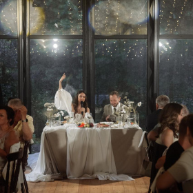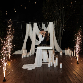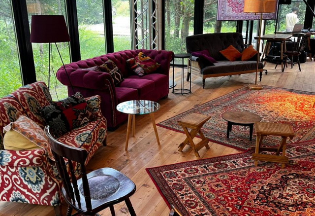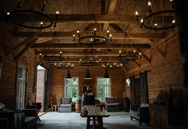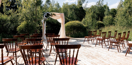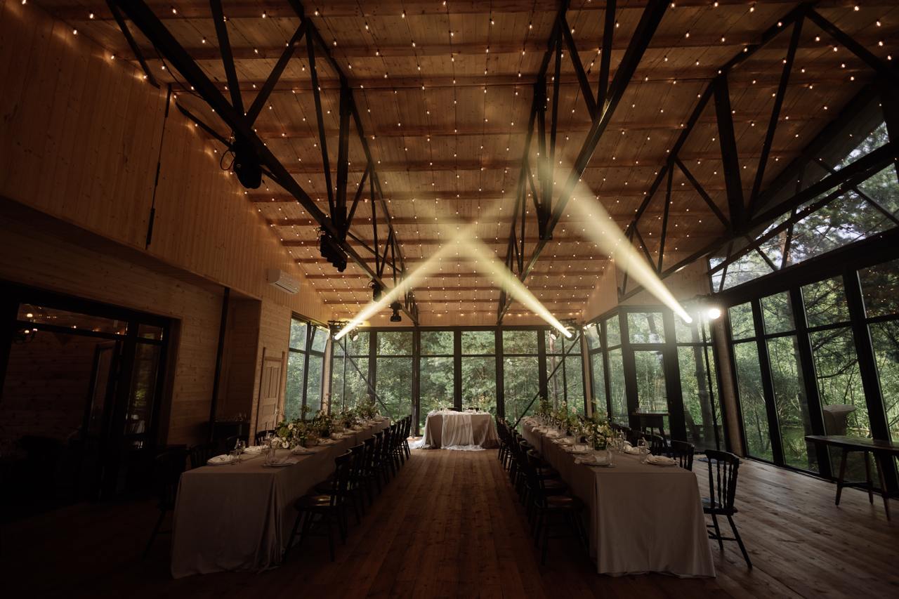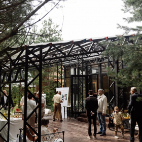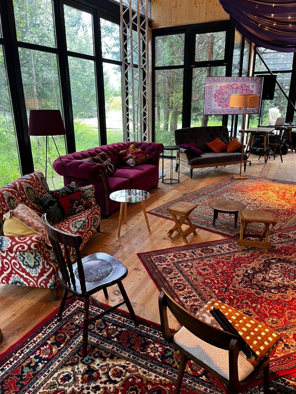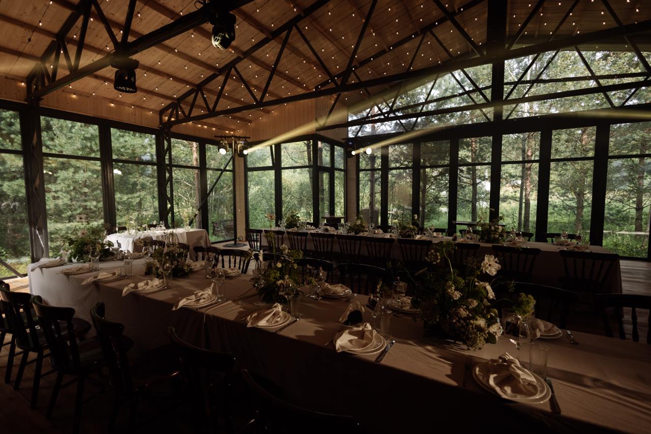 - банкетный зал состоит из 2-х частей - амбар (75 кв.м) и застекленная, утепленная веранда 150 кв.м. + крытая и открытая террасы