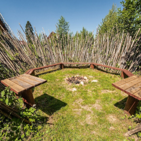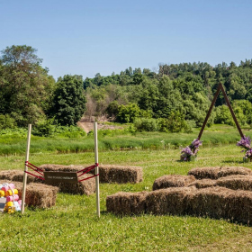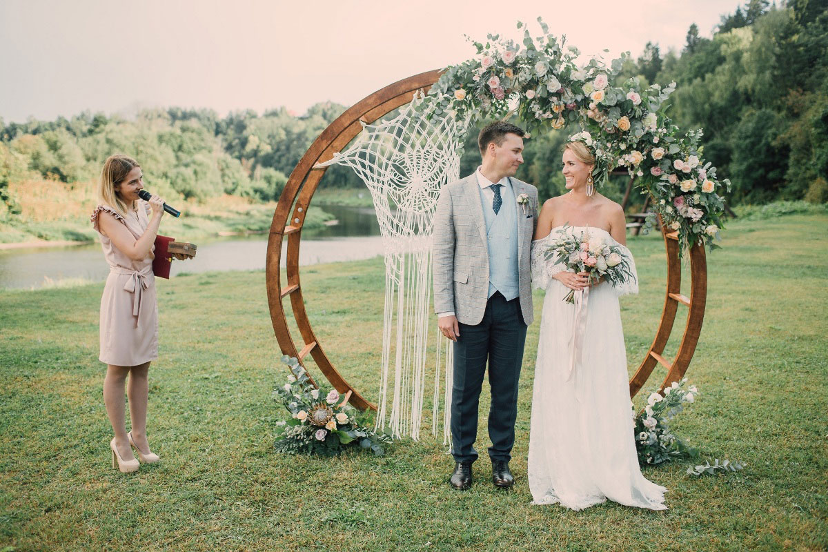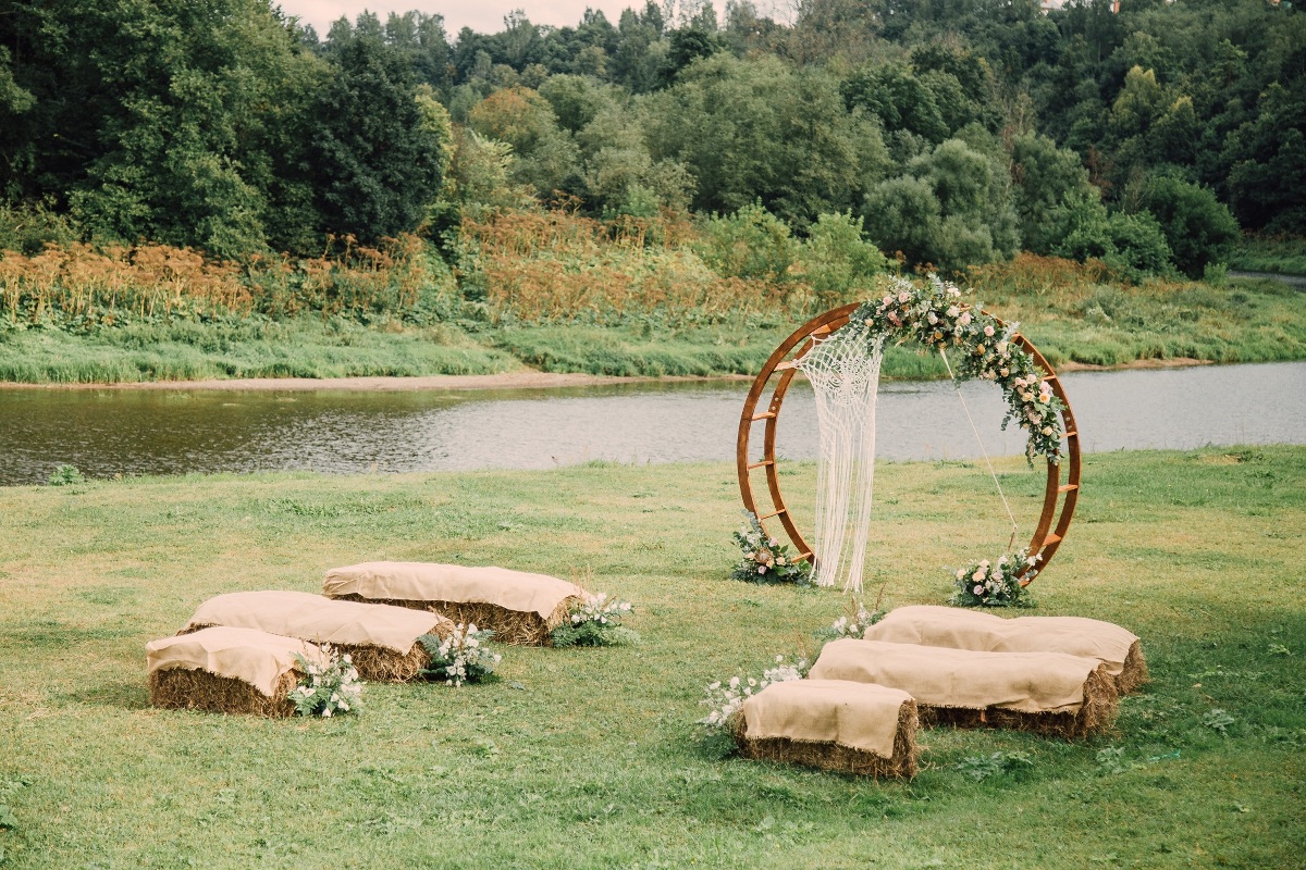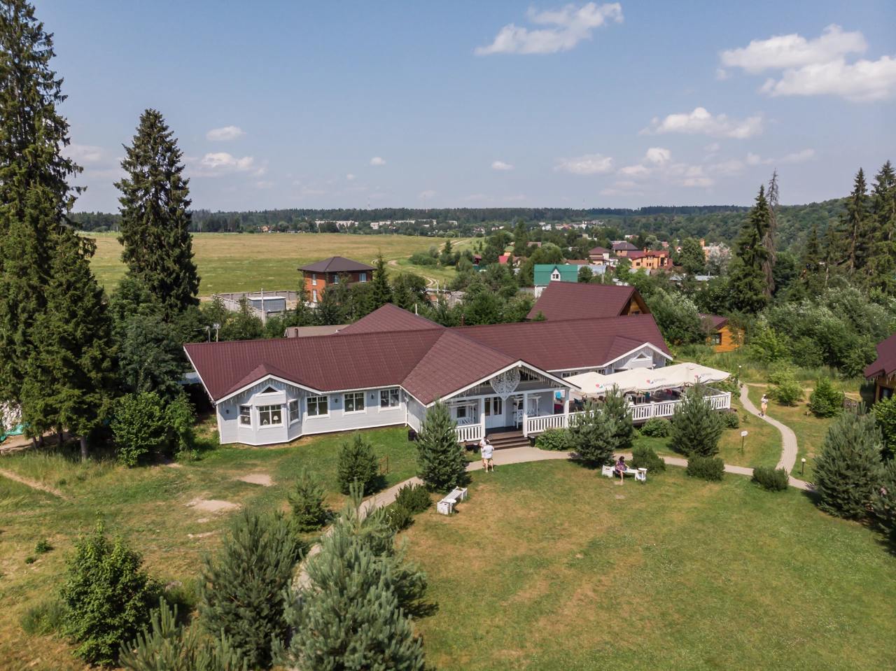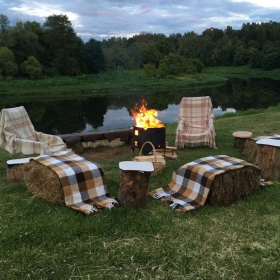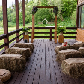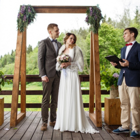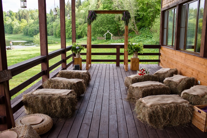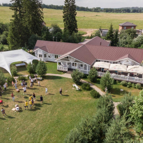 Расположенная на холме банкетная площадка с открывающимся видом на Москву-реку наиболее популярна при проведении свадебных мероприятий: совмещение закрытой от ветра зоны гостей и открытой танцевальной площадки, популярной для выездных регистраций