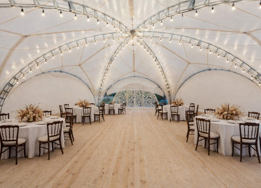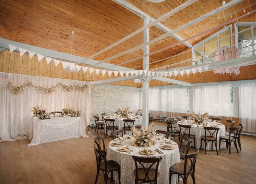 Расположенная на холме банкетная площадка с открывающимся видом на Москву-реку наиболее популярна при проведении свадебных мероприятий: совмещение закрытой от ветра зоны гостей и открытой танцевальной площадки, популярной для выездных регистраций