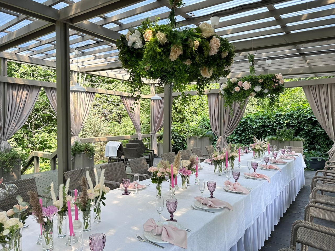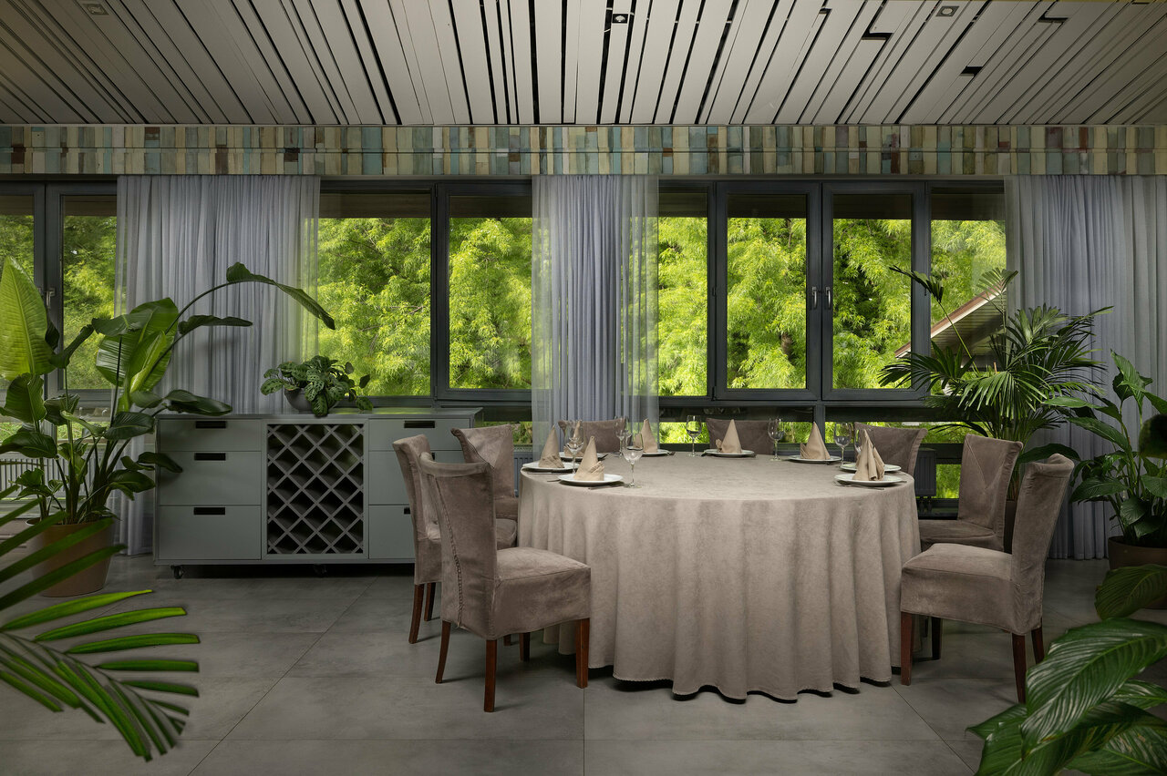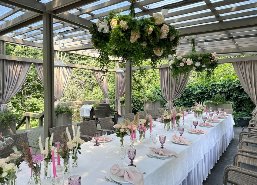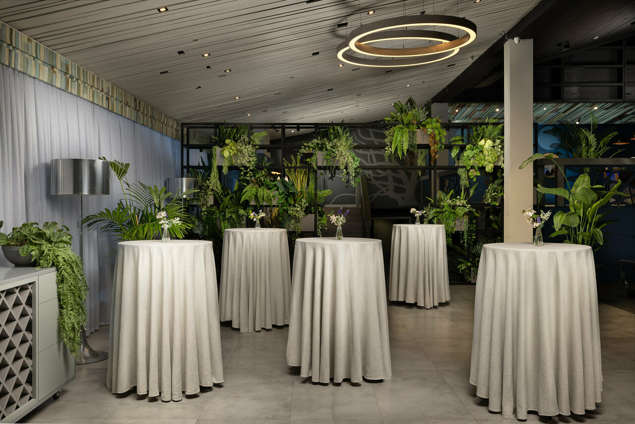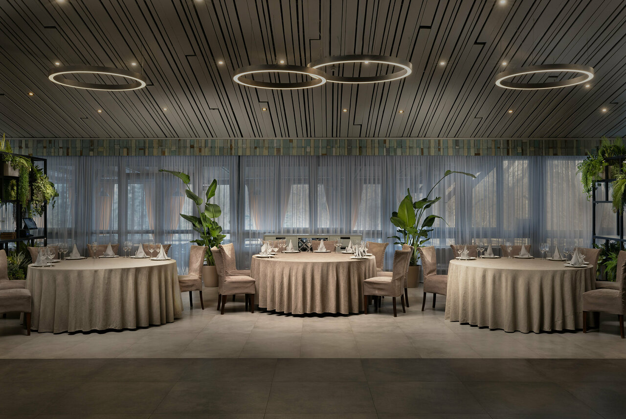 У нас вы можете организовать как небольшой банкет на 10-30 человек, так и корпоративное торжество на 100-400 персон.