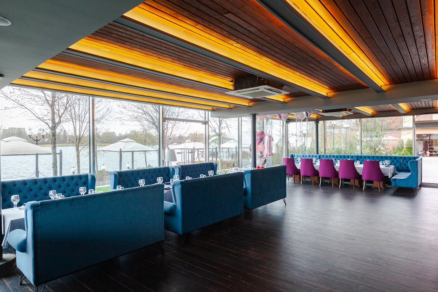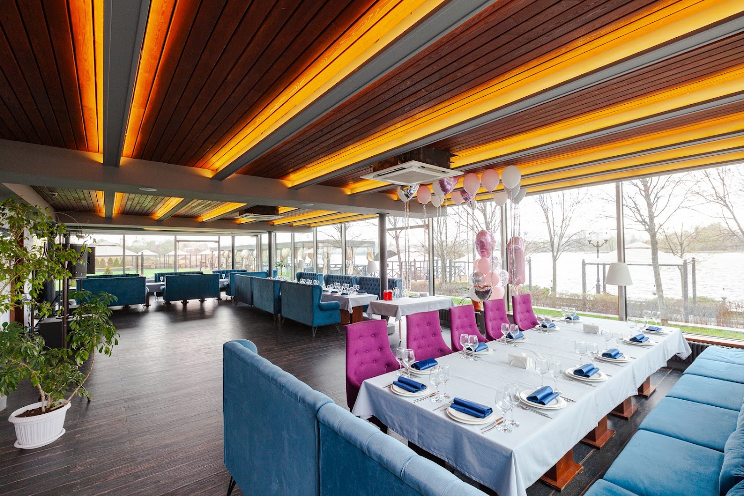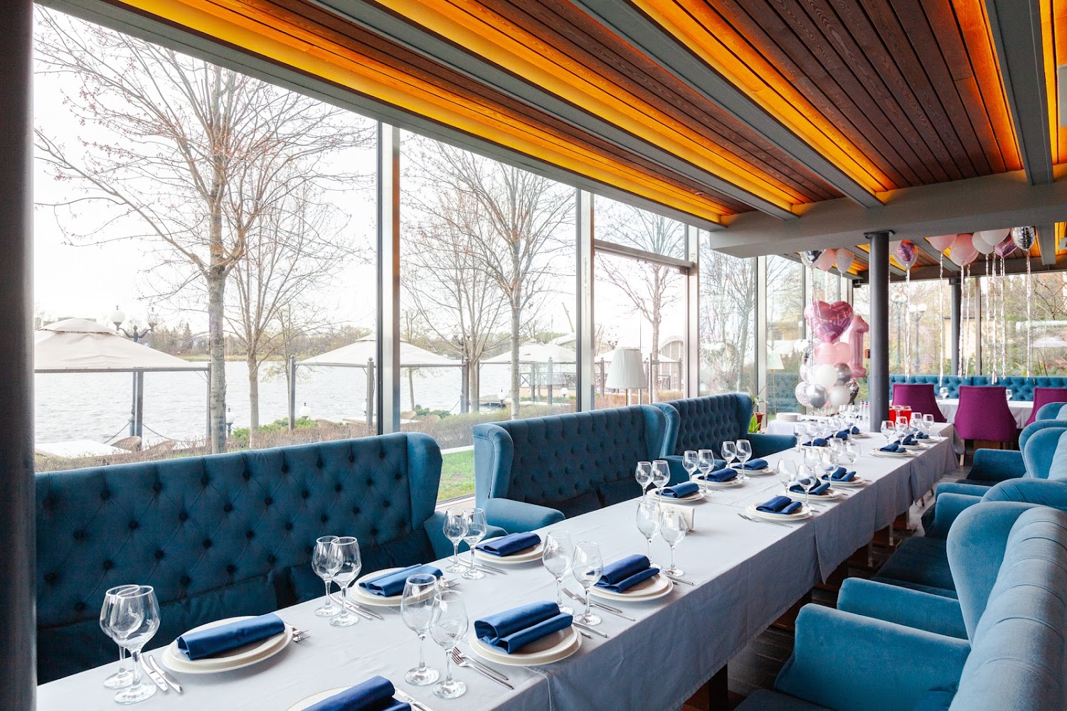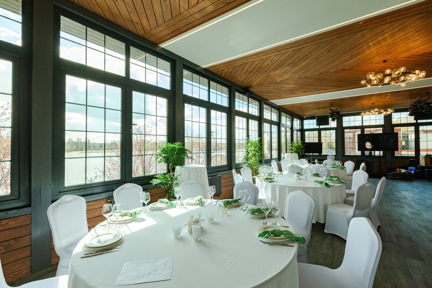 Яхт-клуб Waterhouse — вместительная загородная площадка в Долгопрудном, сочетающая ресторанный комплекс, просторные банкетные залы и уютные зоны отдыха рядом с причалами и водной акваторией. Здесь гости могут провести свадьбы, юбилеи, корпоративы и другие торжества в светлых панорамных залах с возможностью организации выездной регистрации, живой музыки и фотозон на свежем воздухе. Площадка предлагает гибкие варианты размещения гостей, профессиональный уровень сервиса и продуманную инфраструктуру — от караоке- и кальянных комнат до открытых террас и зоны с бассейном, что гарантирует комфорт и впечатления для всех возрастов.