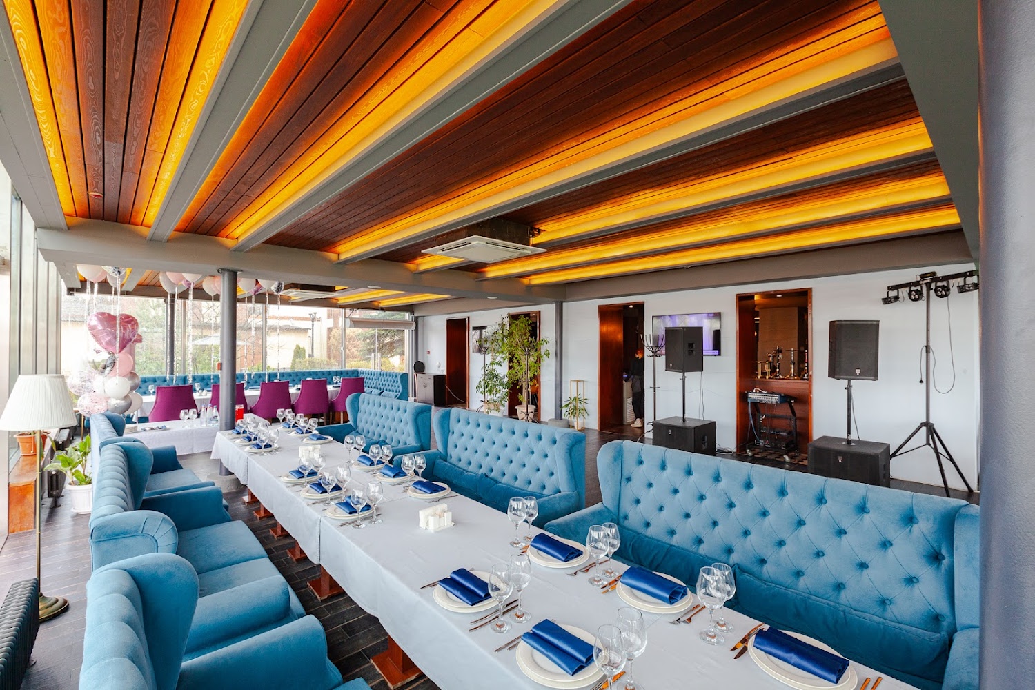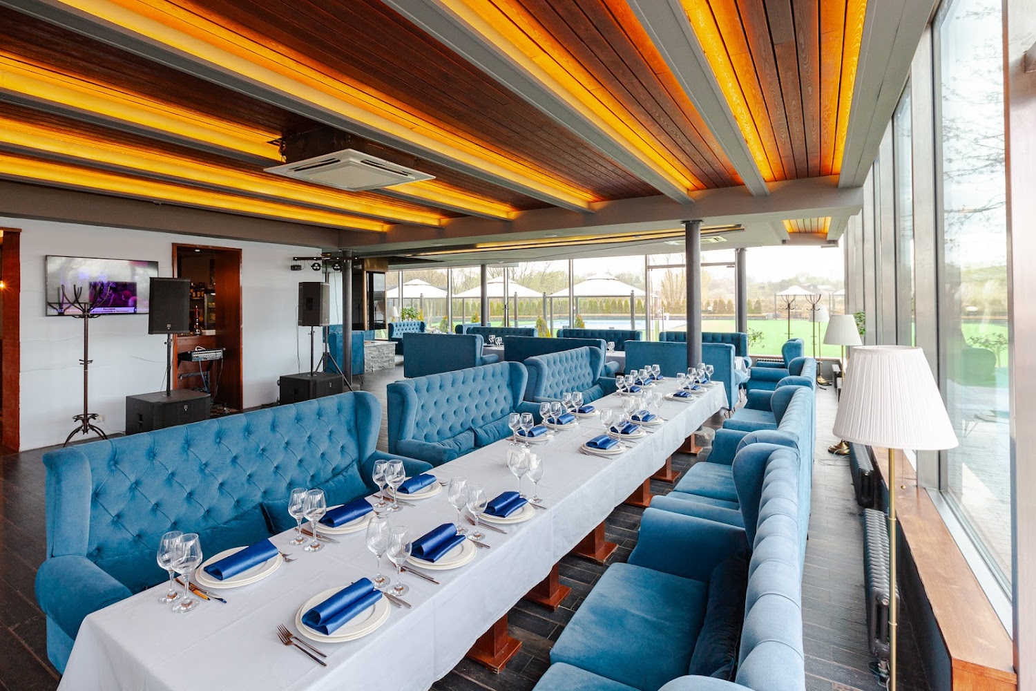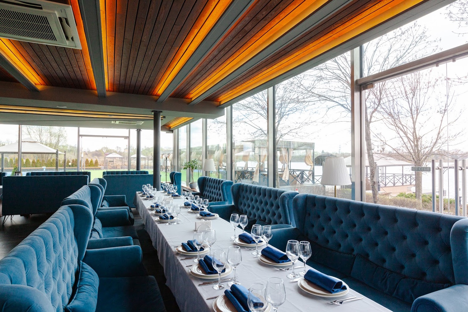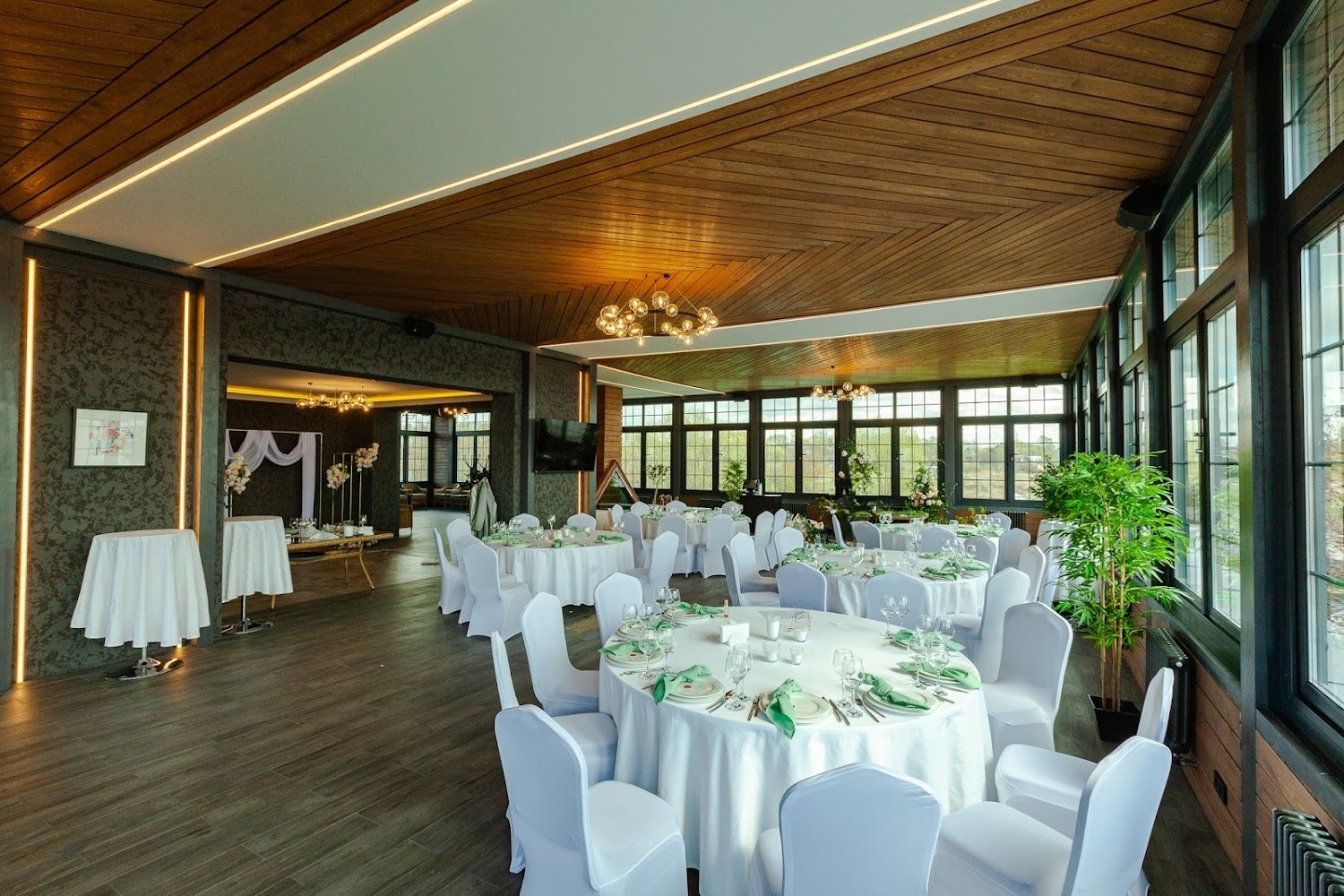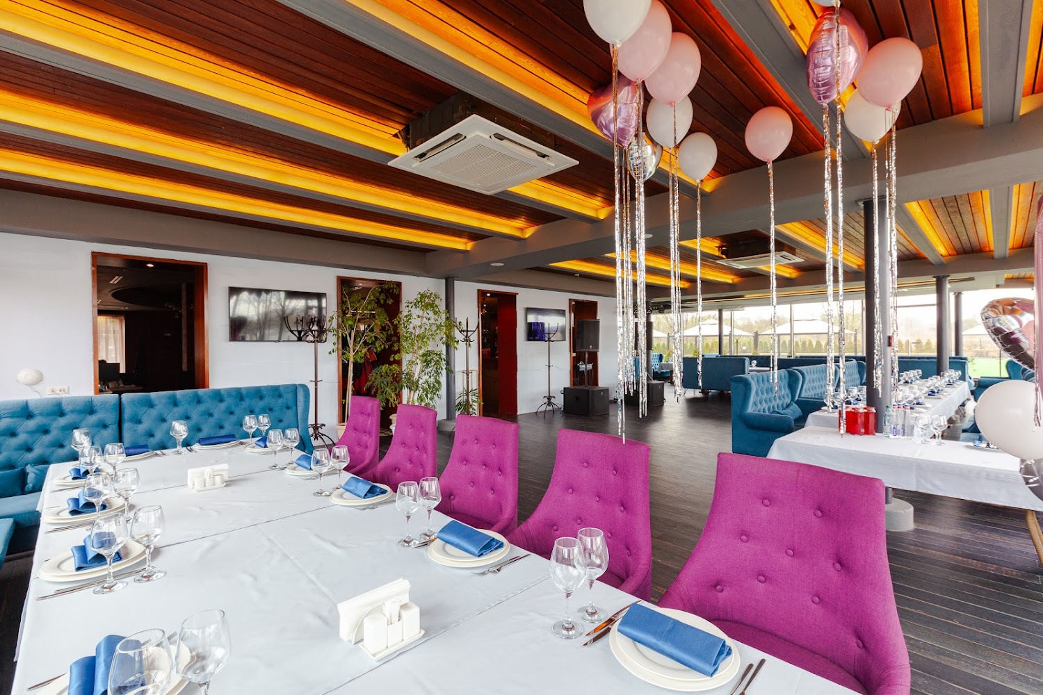 Яхт-клуб Waterhouse — вместительная загородная площадка в Долгопрудном, сочетающая ресторанный комплекс, просторные банкетные залы и уютные зоны отдыха рядом с причалами и водной акваторией. Здесь гости могут провести свадьбы, юбилеи, корпоративы и другие торжества в светлых панорамных залах с возможностью организации выездной регистрации, живой музыки и фотозон на свежем воздухе. Площадка предлагает гибкие варианты размещения гостей, профессиональный уровень сервиса и продуманную инфраструктуру — от караоке- и кальянных комнат до открытых террас и зоны с бассейном, что гарантирует комфорт и впечатления для всех возрастов.