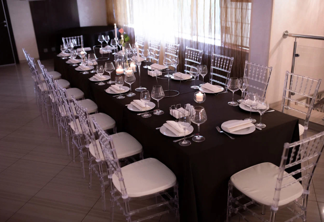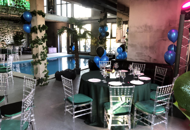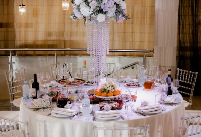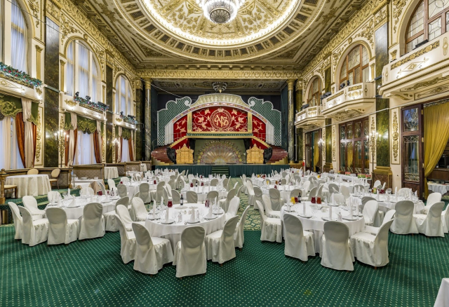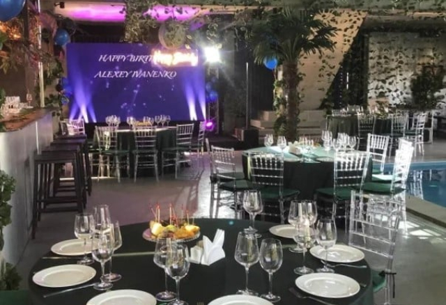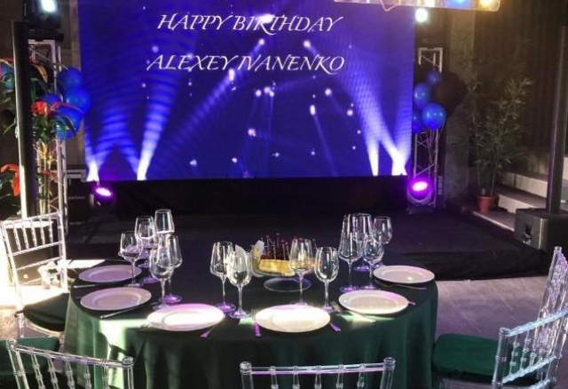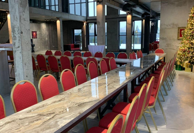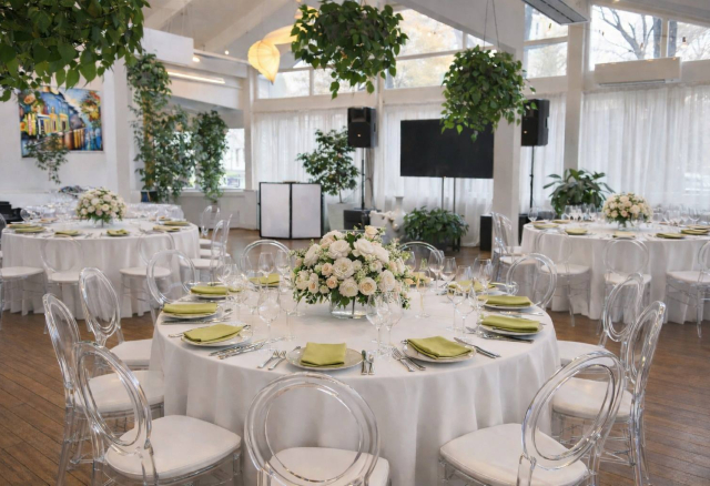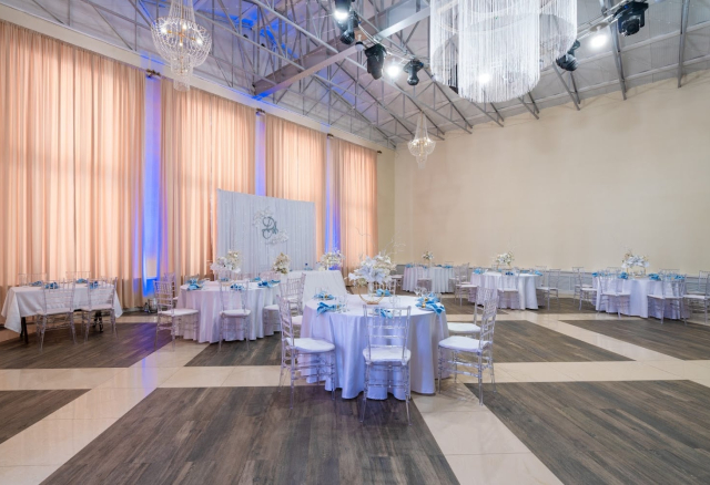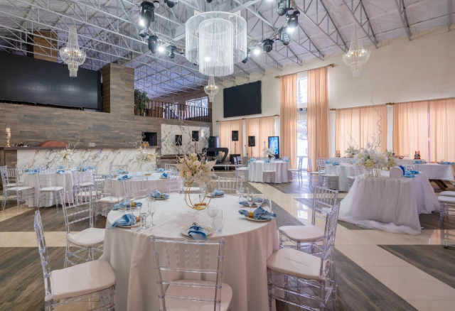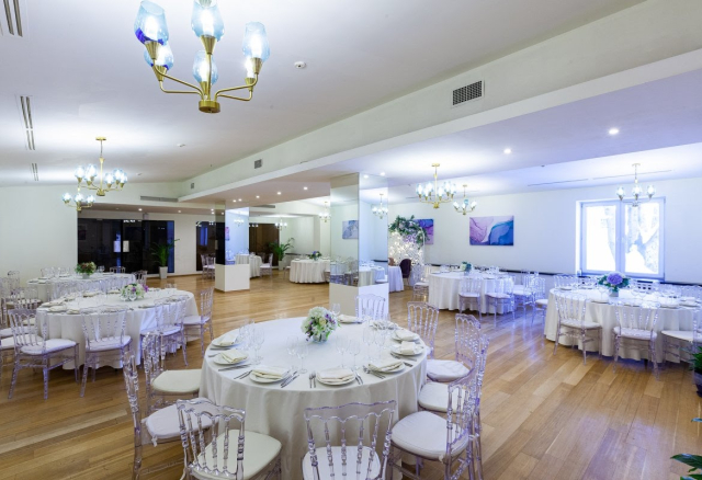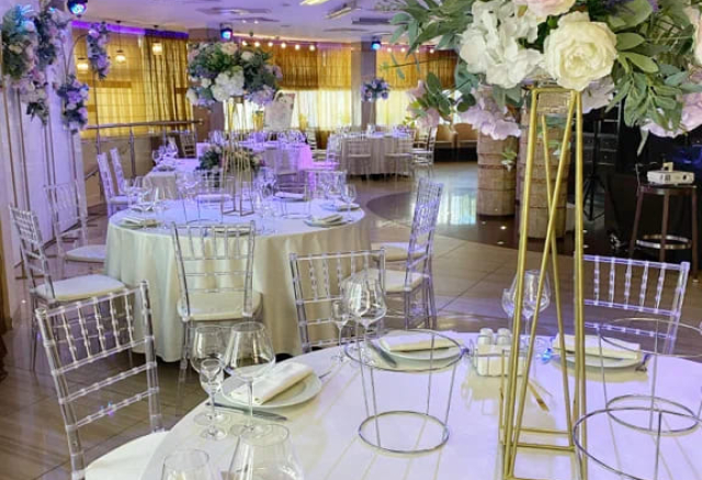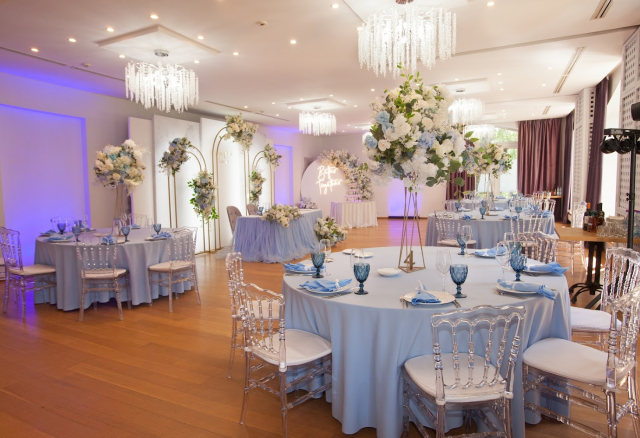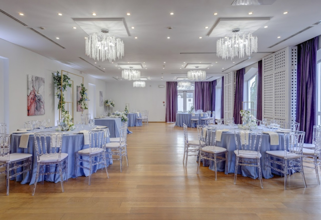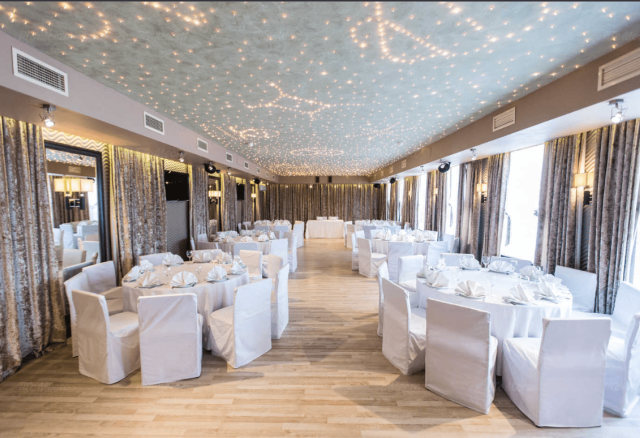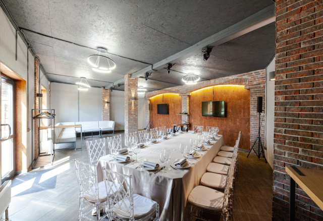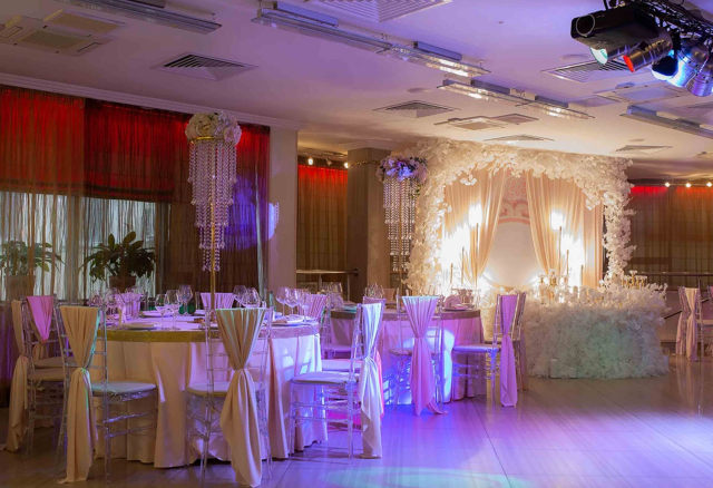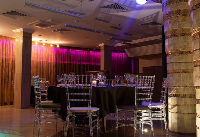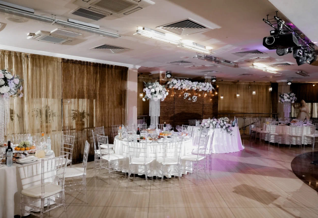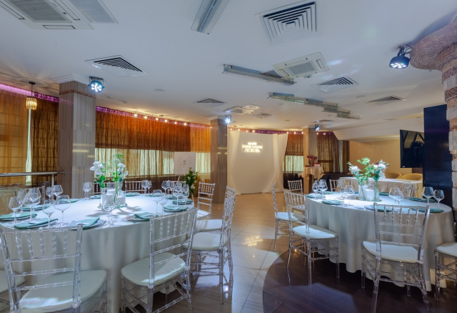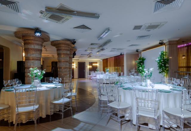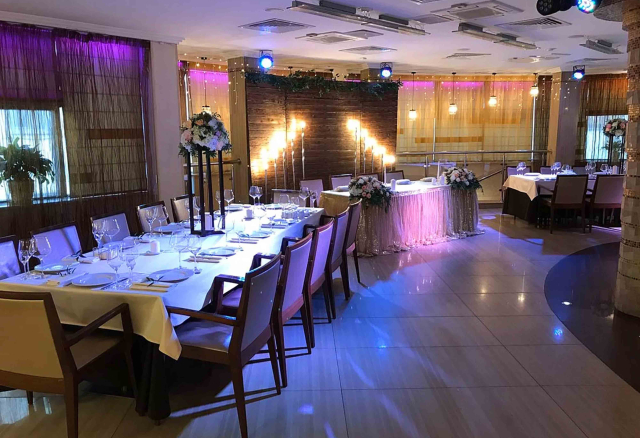 Банкетный зал Вместимость 120 Средний чек 6 000 ₽ Стоимость аренды 150 000 – 200 000 ₽ Депозит на банкет 550 000 ₽