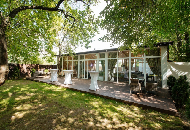 Большая веранда Вместимость 140 Средний чек 6 500 ₽ Стоимость аренды 30 000 – 50 000 ₽ Депозит на банкет 200 000 – 250 000 ₽