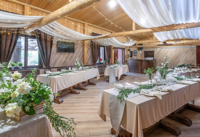 Сосновый бор Вместимость 150 Средний чек 6 700 ₽ Стоимость аренды 55 000 – 90 000 ₽ Депозит на банкет Нет